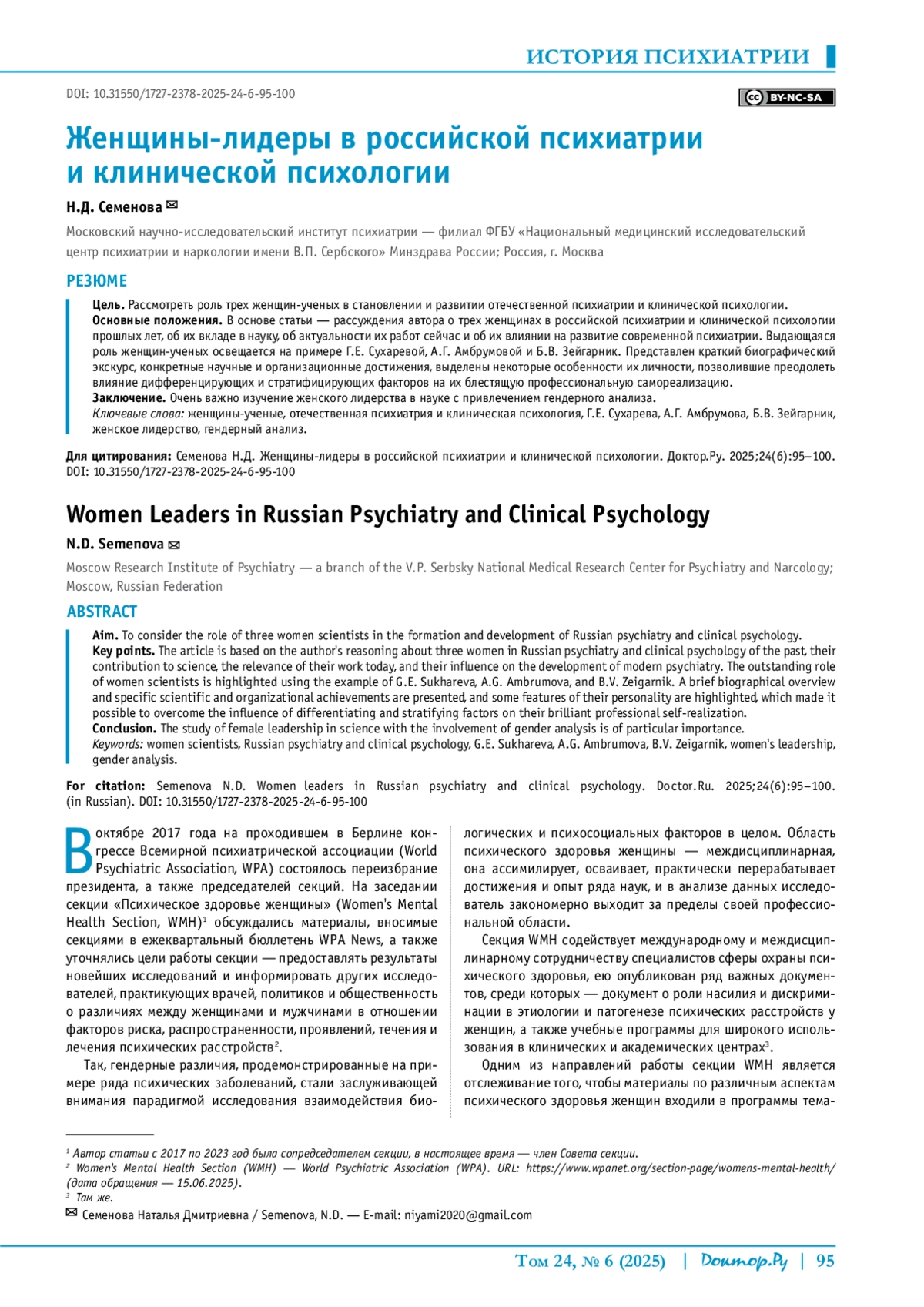 Lyubov Е.В., Tsuprun V.E. Professor Ambrumova’s era: her contribution to Russian suicidology. Medical Psychology in Russia: electronic scientific journal. 2013;2(19). (in Russian).