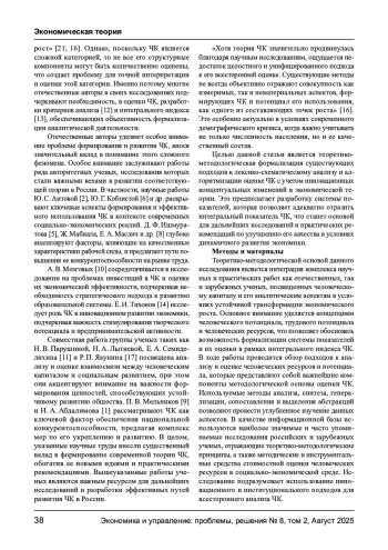 19. Avdeeva D. Human Capital Measures in Economic Growth Studies: An Overview. // Higher School of Economics Economic Journal. 2022. Vol. 26(2). P. 240-269. DOI: 10.17323/18138691-2022-26-2-240-269 EDN: SUZZLO