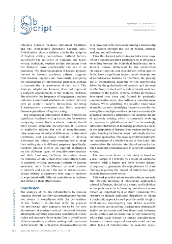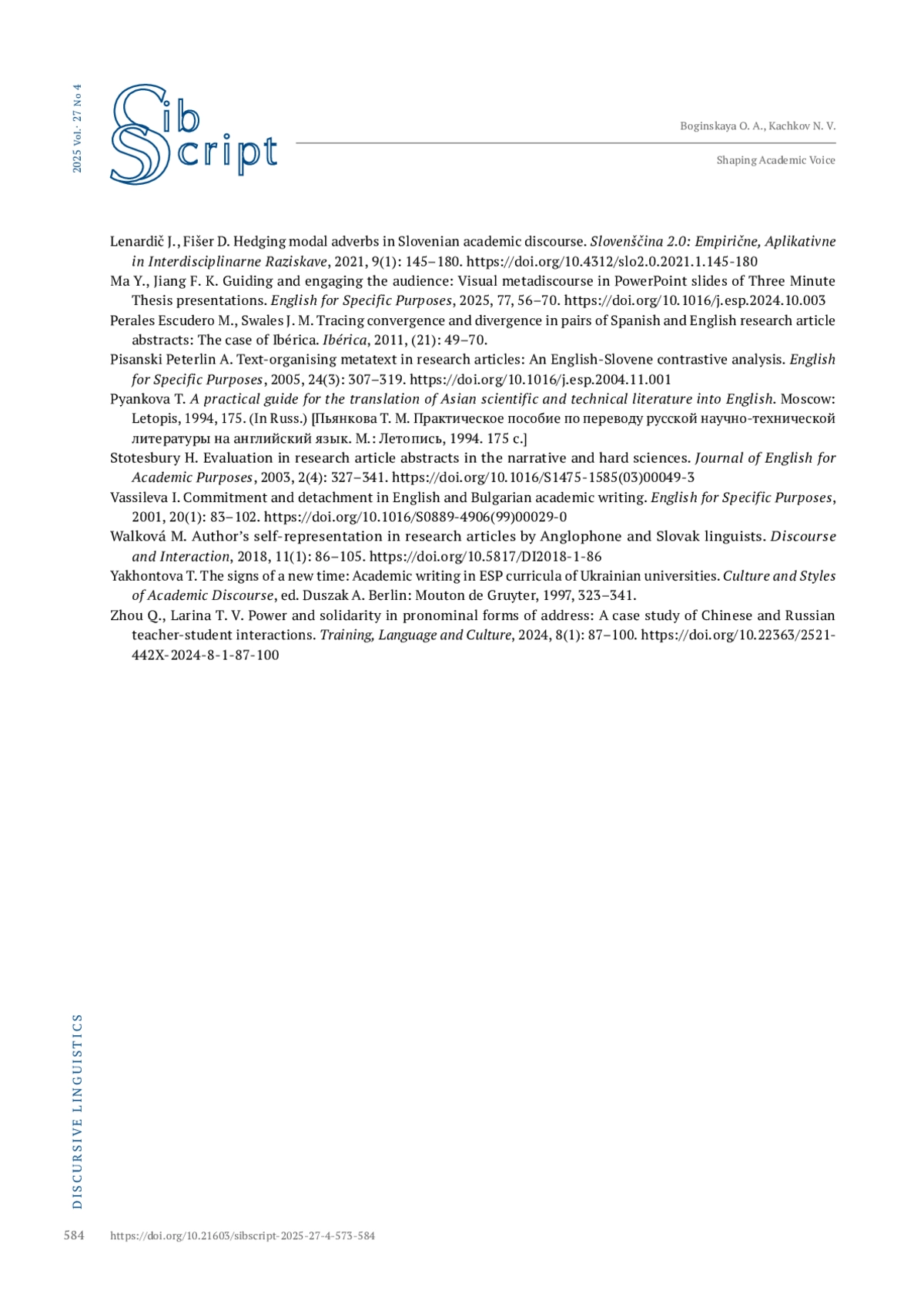 16. Khoutyz I. Engagement in written academic discourse: A cross-cultural study of Russian and English research articles. International Journal of Russian Studies, 2015, 4(2): 135-160. https://elibrary.ru/uajlzj