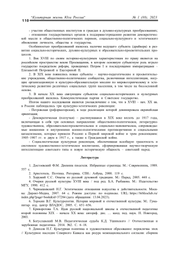 9. Денисов Н.Г. Культурная политика и художественное образование: перекличка эпох // Культурное наследие Северного Кавказа как ресурс межнационального согласия: сборник научных статей по итогам международного научного форума. М.: Институт Наследия, 2021. 426 с.