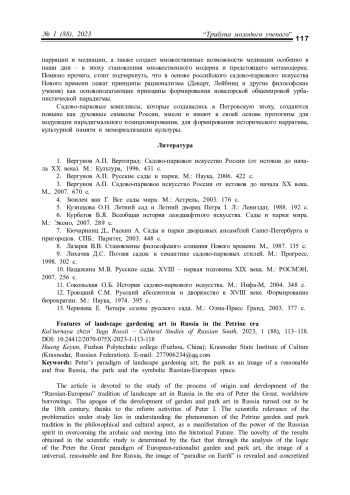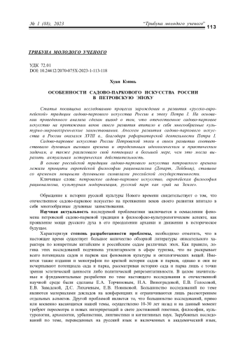 Статья: ОСОБЕННОСТИ САДОВО-ПАРКОВОГО ИСКУССТВА РОССИИ В ПЕТРОВСКУЮ ЭПОХУ (2023)