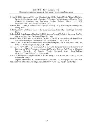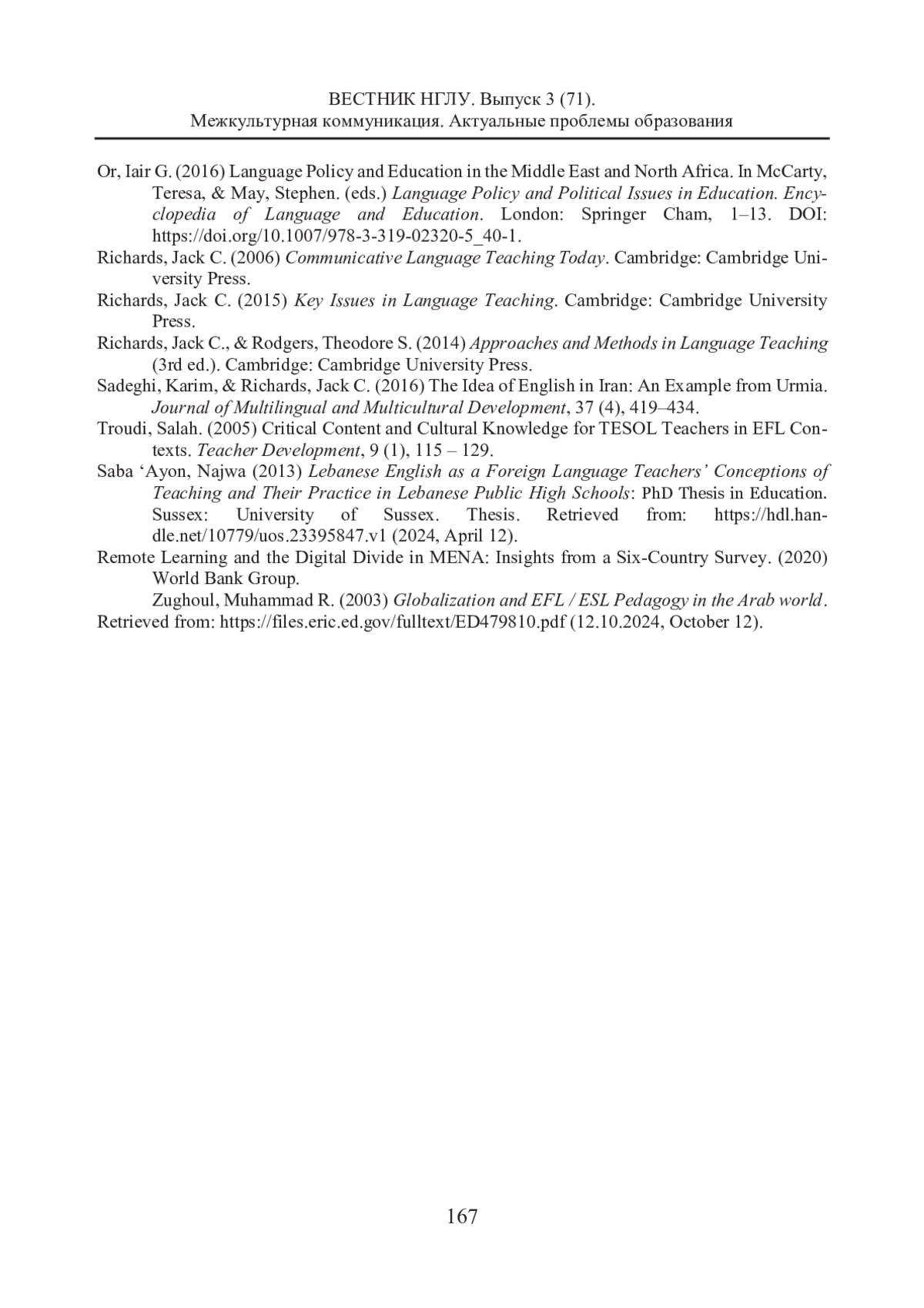 29. Zughoul, Muhammad R. (2003) Globalization and EFL / ESL Pedagogy in the Arab world. Retrieved from: https://files.eric.ed.gov/fulltext/ED479810.pdf (12.10.2024, October 12).