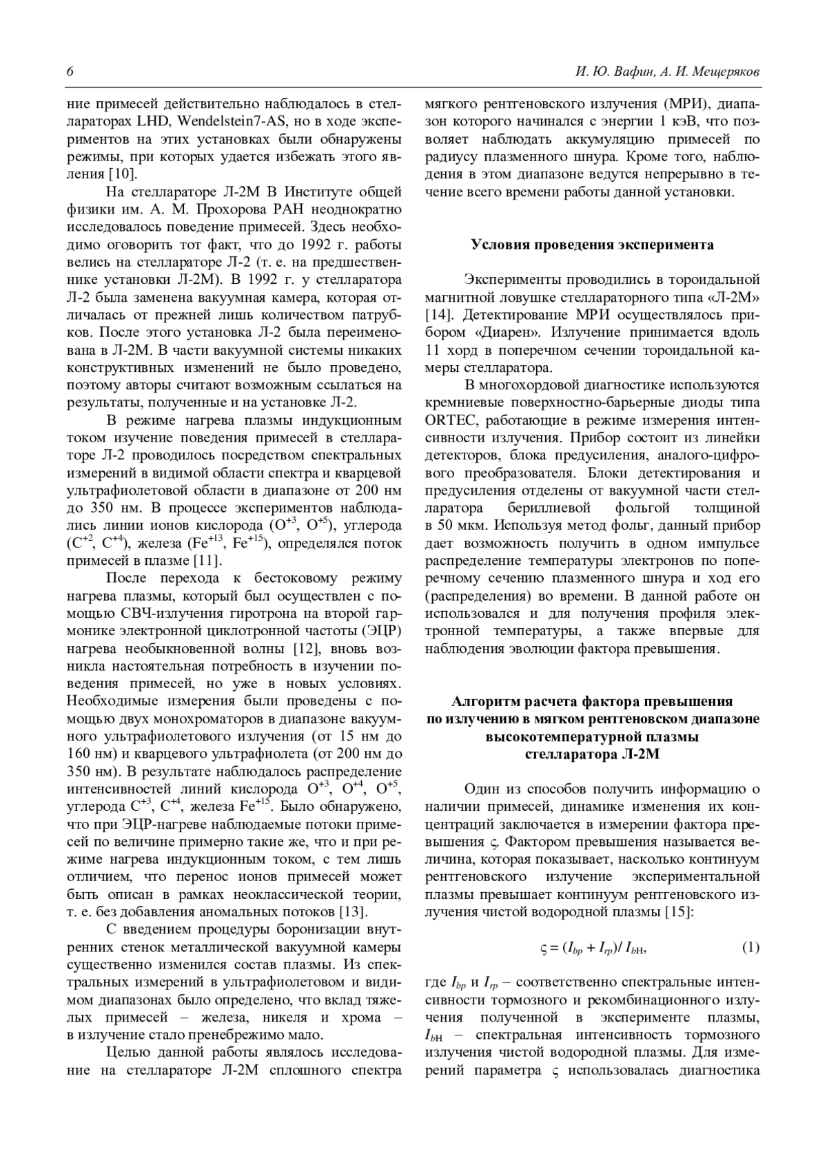 I. Yu. Vafin and A. I. Meshcheryakov Dynamics of impurities accumulation in the L-2M stellarator plasma 5