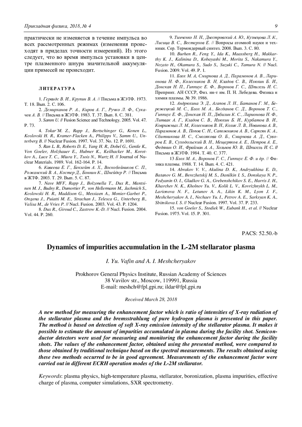 9. Тимченко Н. Н., Днестровский А. Ю., Кузнецова Л. К., Лисица В. С., Вестерхов Е. // Вопросы атомной науки и техники. Сер. Термоядерный синтез. 2008. Вып. 3. С. 80.