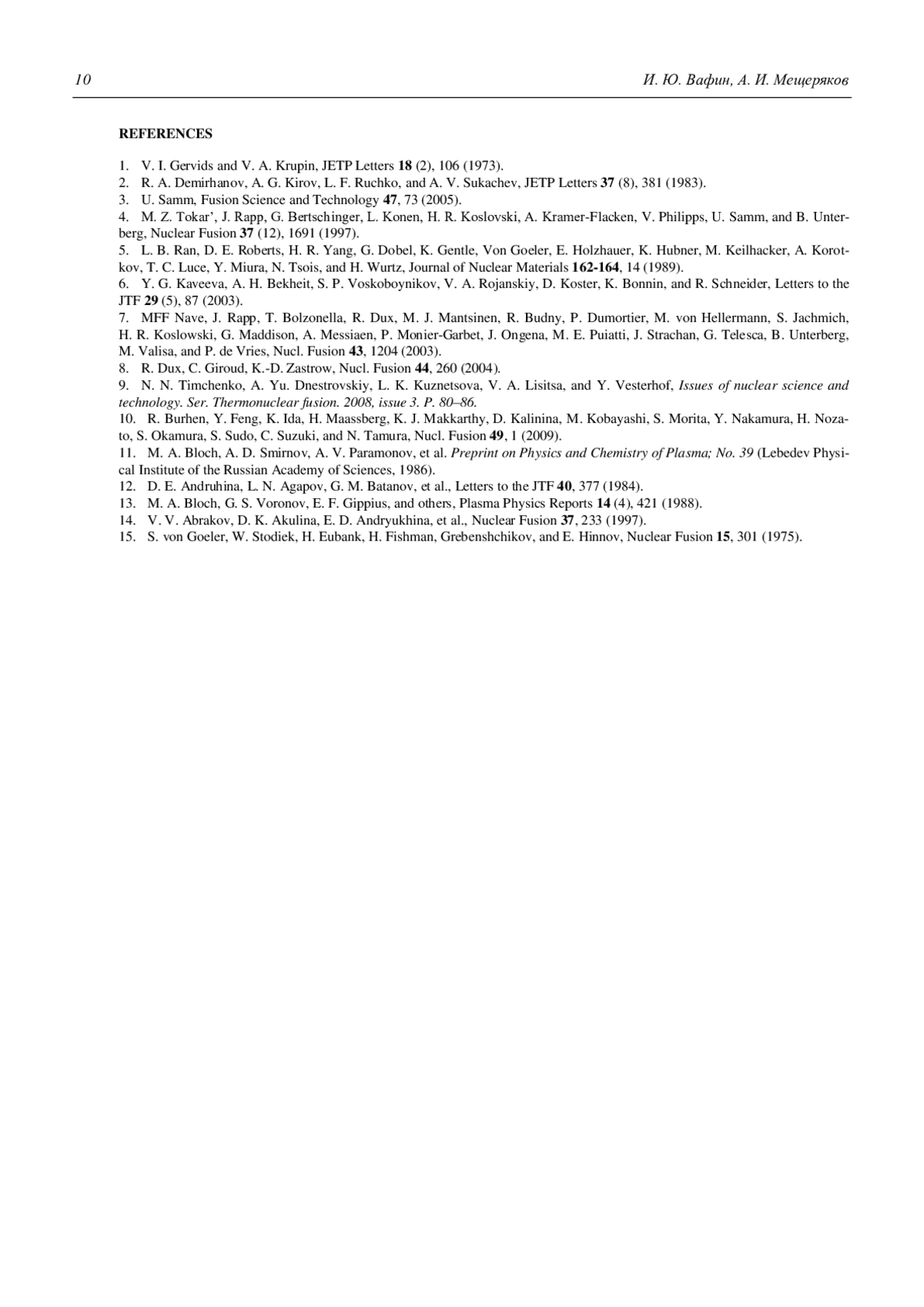 3. Samm U. // Fusion Science and Technology. 2005. Vol. 47. P. 73.