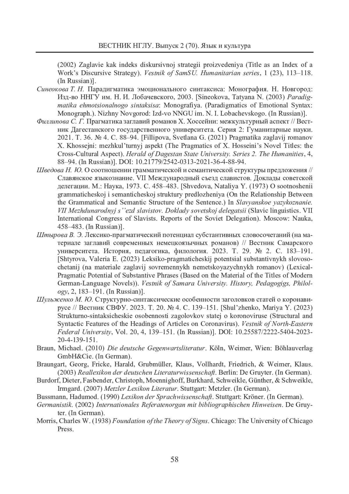 18. Штырова В. Э. Лексико-прагматический потенциал субстантивных словосочетаний (на материале заглавий современных немецкоязычных романов) // Вестник Самарского университета. История, педагогика, филология. 2023. Т. 29. № 2. С. 183-191. EDN: EXZFTY
