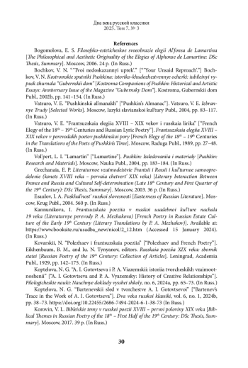 18. Вольперт Л. И. Ламартин // Пушкин: Исследования и материалы. М.: Наука, 2004. С. 183-184.
