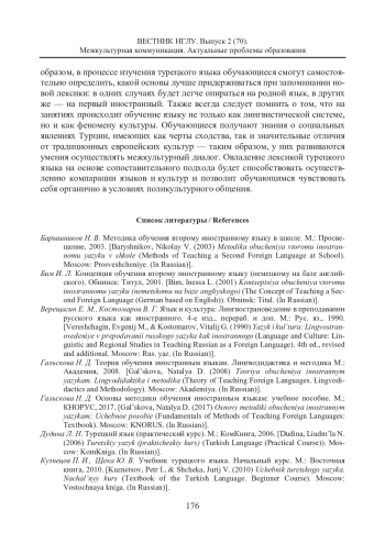 1. Барышников Н. В. Методика обучения второму иностранному языку в школе. М.: Просвещение, 2003. EDN: QSXQAL
