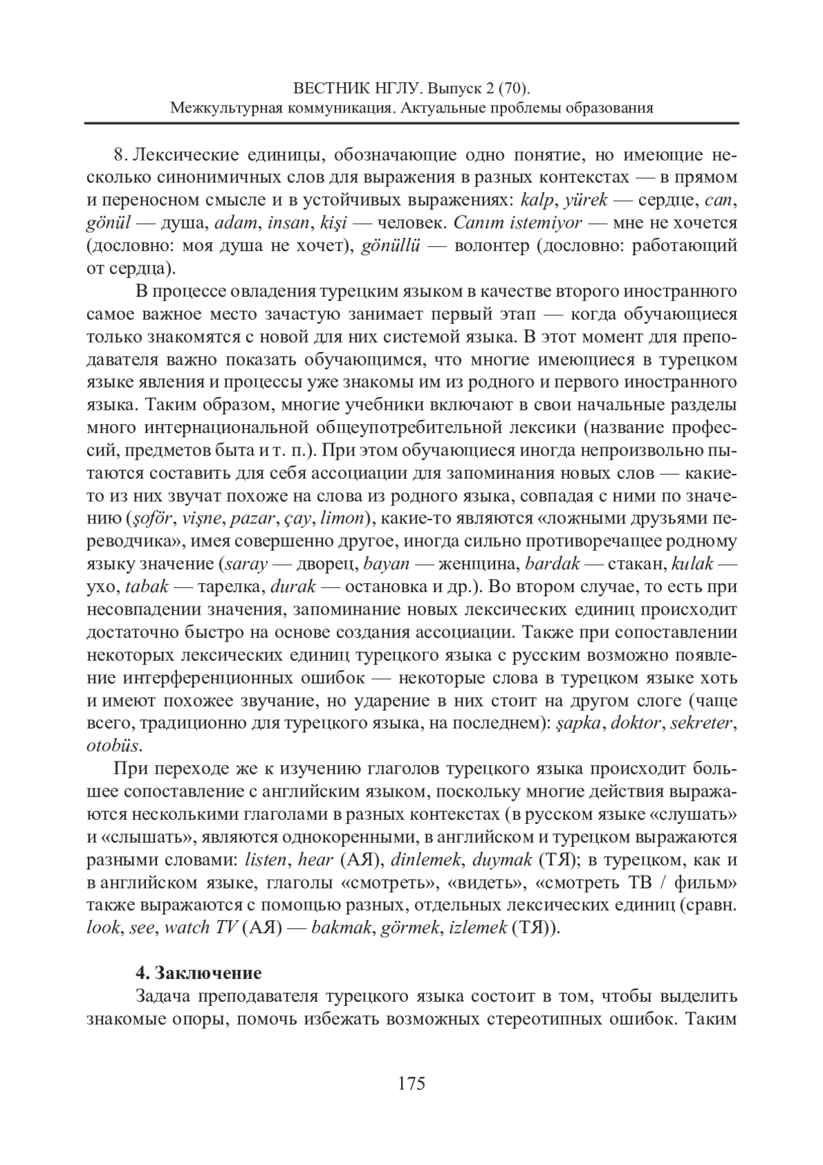 8. Напольнова Е. М. Отражение идентичности в лексике турецкого языка // Вестник Московского университета. Серия 13: Востоковедение. 2020. № 1. С. 50-67. EDN: SQVNZZ