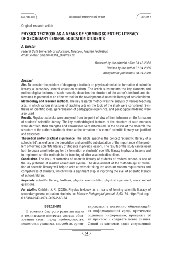 Результаты. Проведён анализ учебных пособий по физике с точки зрения их влияния на формирование научной грамотности учащихся. Были выявлены ключевые методические особенности структуры таких пособий, определены их сильные и слабые стороны. В ходе исследования была обоснована и описана структура авторского учебного пособия, направленного на формирование научной грамотности у учащихся.