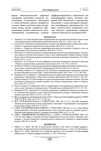 15. 刘丽芬. 多媒体辅助俄语听力教学模式探讨// 北京理工大学学报(社会科学版). 2004. № 4. С. 66-68.