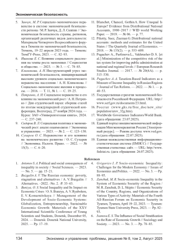 3. Бунзя, О. С. Социальное неравенство и его влияние на экономические кризисы / О. С. Бунзя, А. В. Рябоконь, Е. В. Комарницкая // Управление развитием социально-экономических систем: глобализация, предпринимательство, устойчивый экономический рост: Материалы XXV Международной научной конференции молодых учёных и студентов, Донецк, 05 декабря 2024 года. - Донецк: Донецкий национальный университет, 2025. - С. 17-19. EDN: DZUSWG