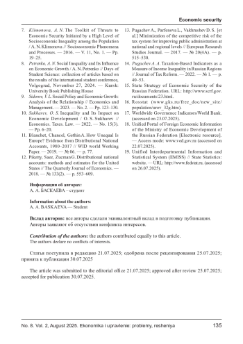 14. Pugachev A. A. Taxation-B ased Indicators as a Measure of Income Inequality in Russian Regions // Journal of Tax Reform. - 2022. - № 1. - p. 40-53. EDN: RWEDRH
