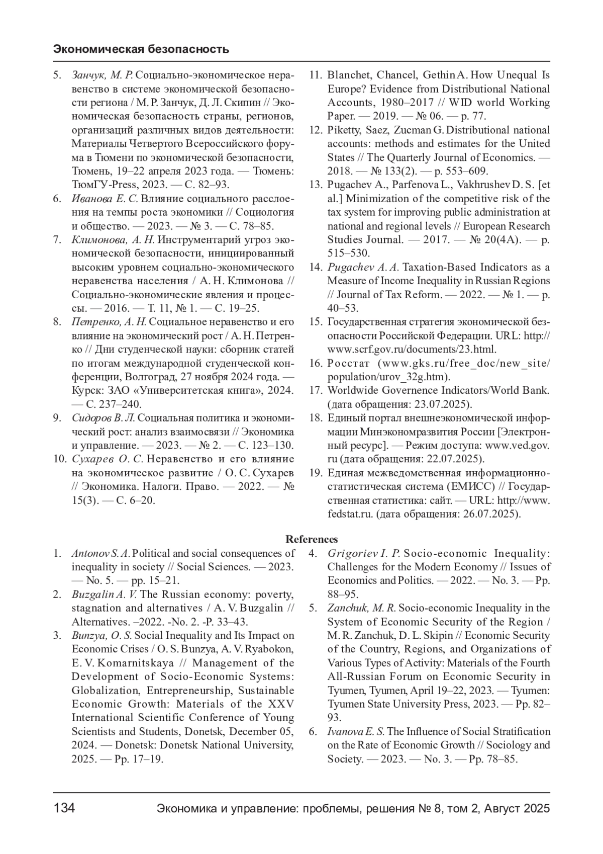 6. Иванова Е. С. Влияние социального расслоения на темпы роста экономики // Социология и общество. - 2023. - № 3. - С. 78-85.