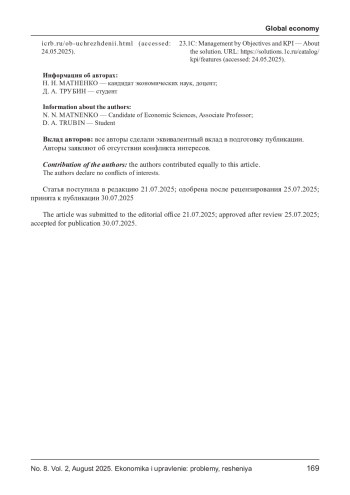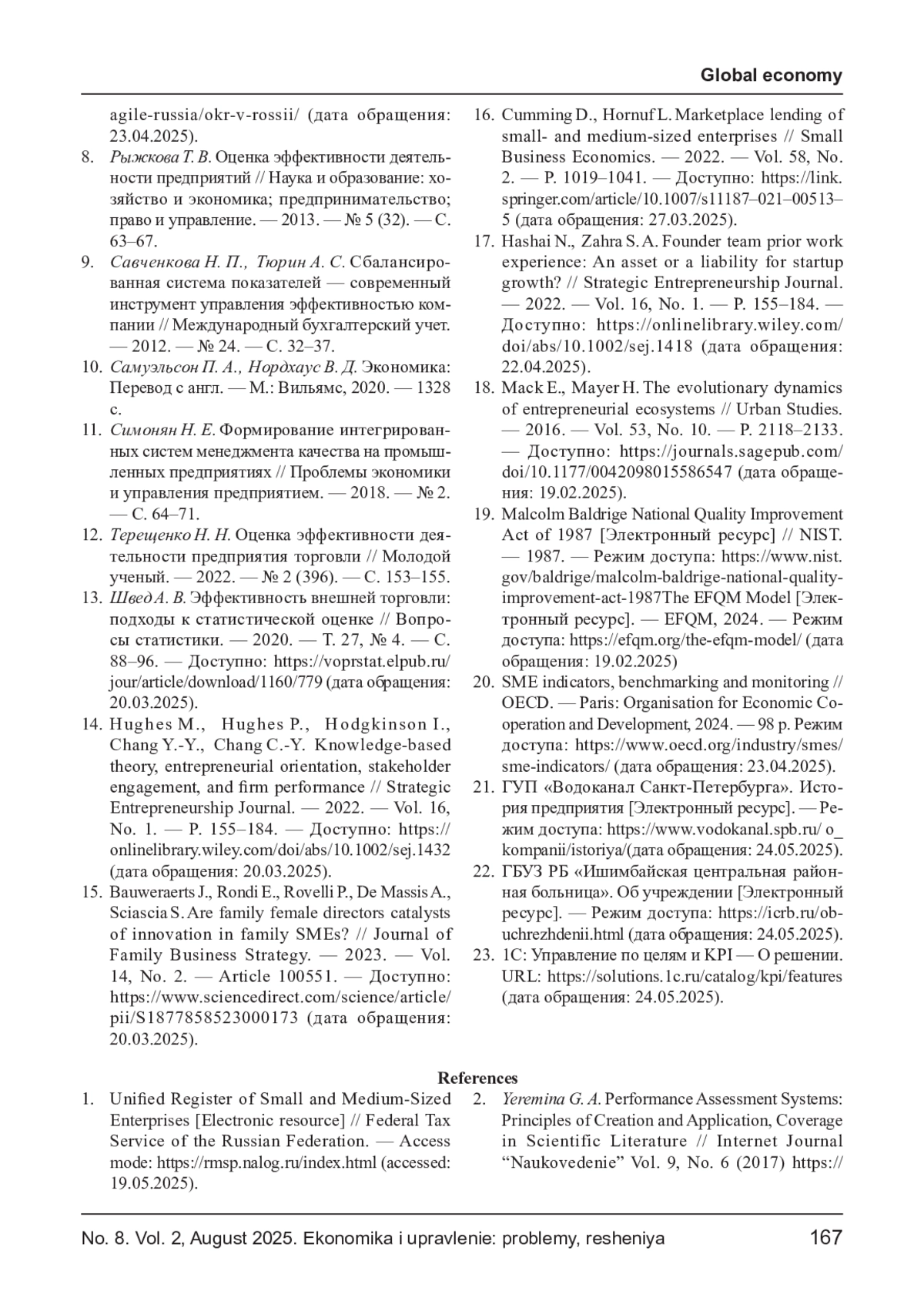 2. Еремина Г. А. Системы оценки эффективности деятельности: принципы создания и применения, освещение в научной литературе // Интернет-журнал “НАУКОВЕДЕНИЕ” Том 9, № 6 (2017) https://naukovedenie.ru/PDF/117EVN617.pdf (дата обращения: 21.04.2025). EDN: YSAILR