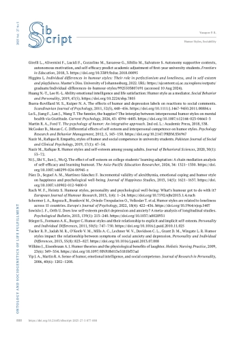 22. Lu S., Jiang F., Lan J., Wang T. The funnier, the happier? The interplay between interpersonal humor styles on mental health via Gratitude. Current Psychology, 2024, 43: 4394-4403. https://doi.org/10.1007/s12144-023-04665-3