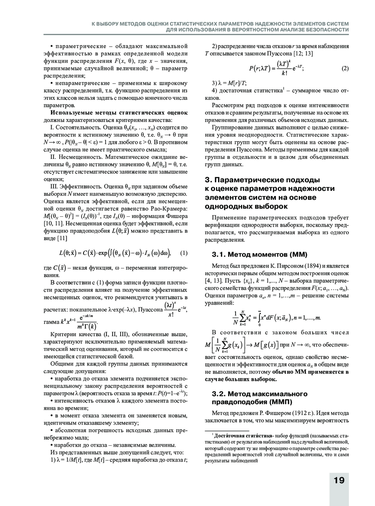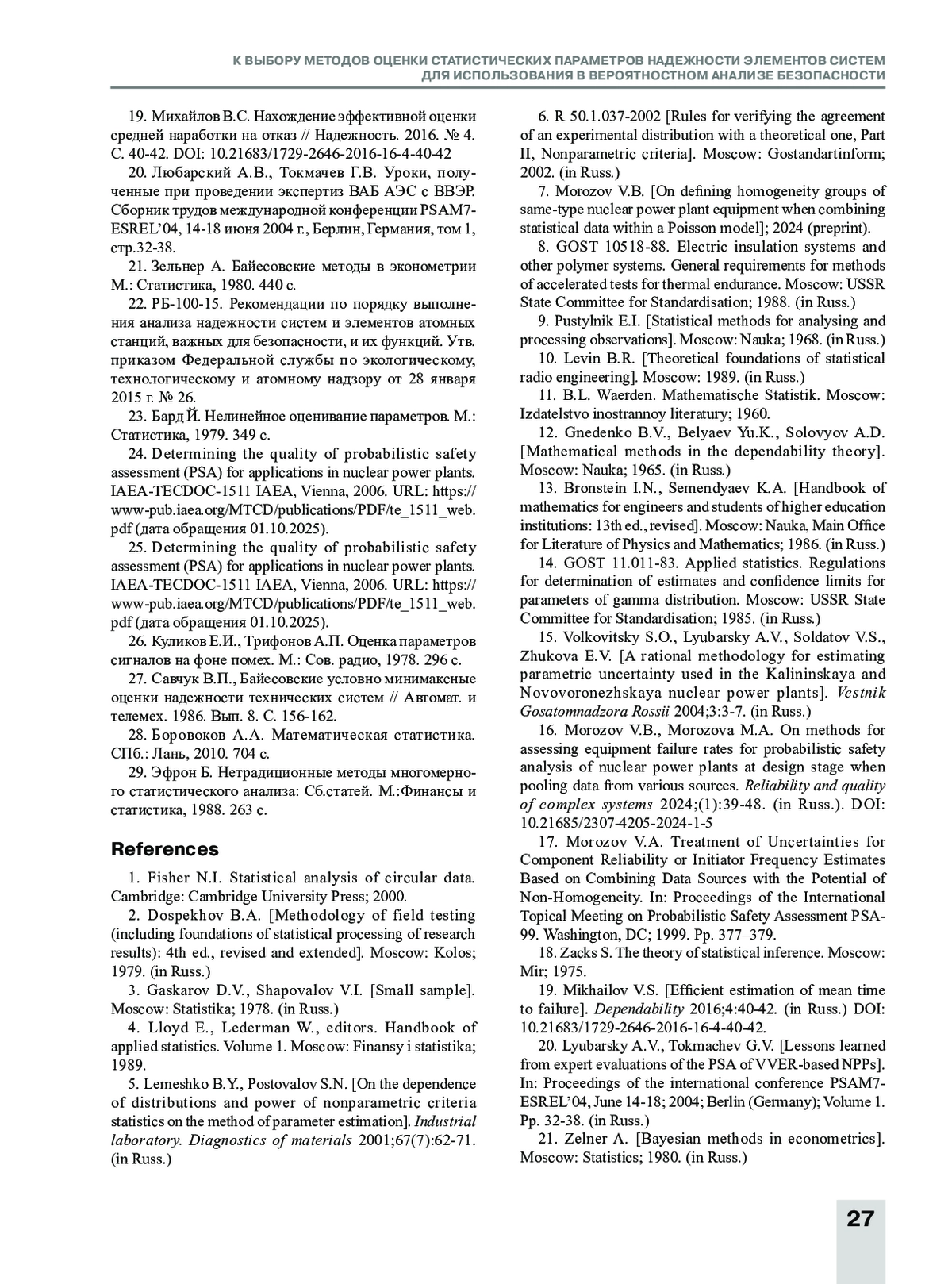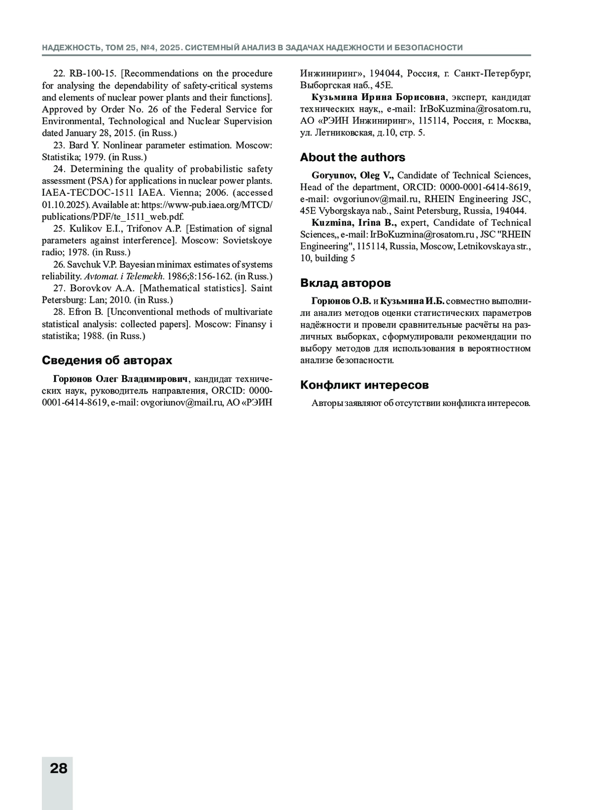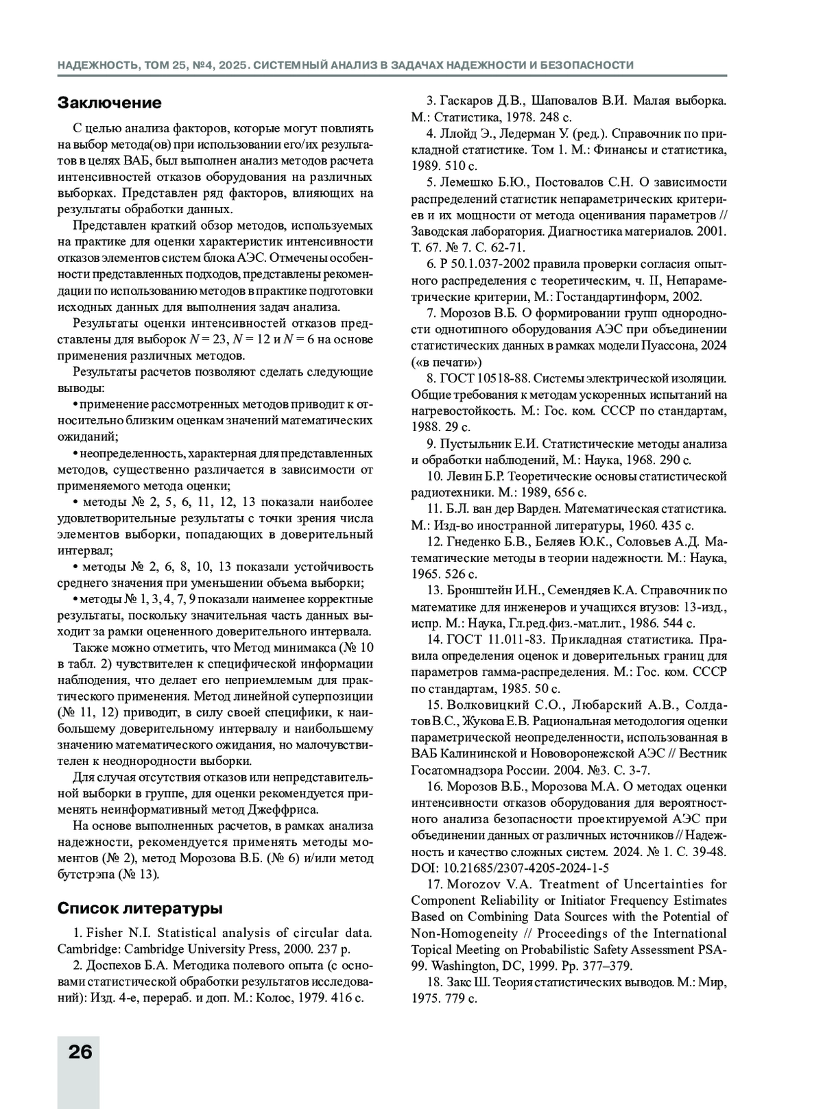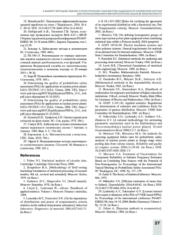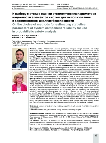 Статья: К выбору методов оценки статистических параметров надежности элементов систем для использования в вероятностном анализе безопасности (2025)