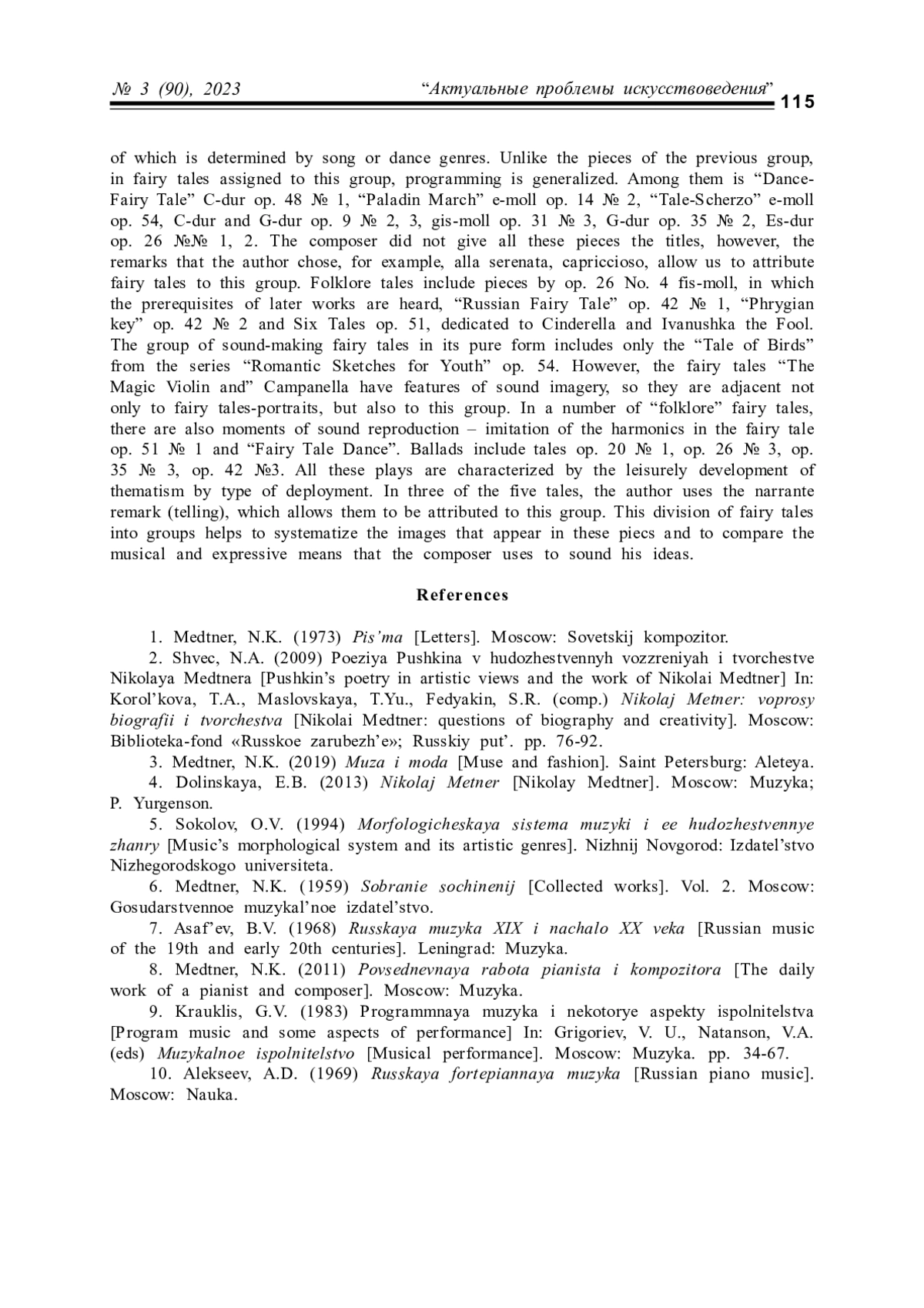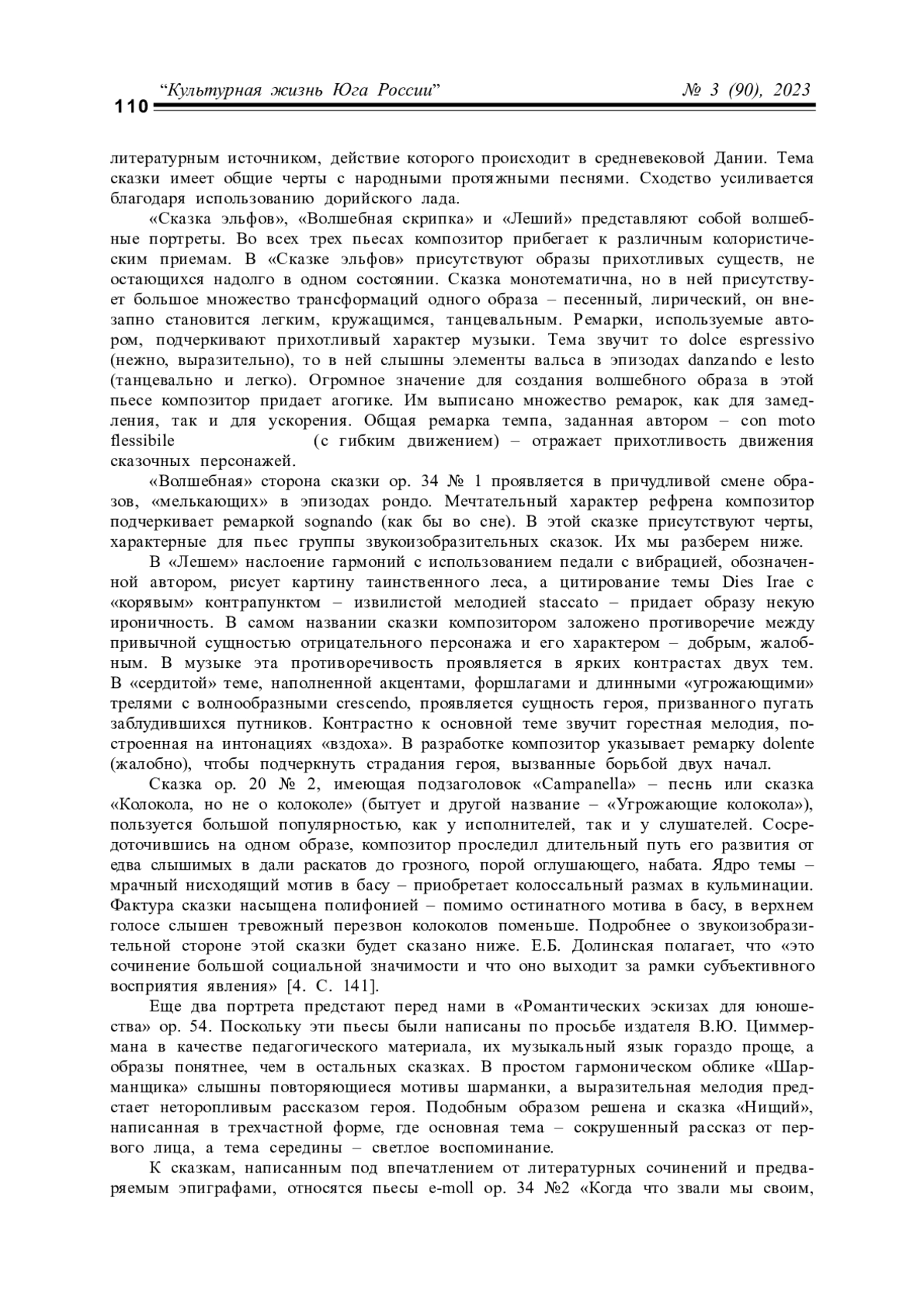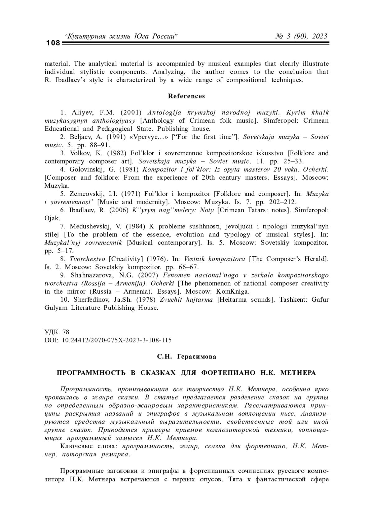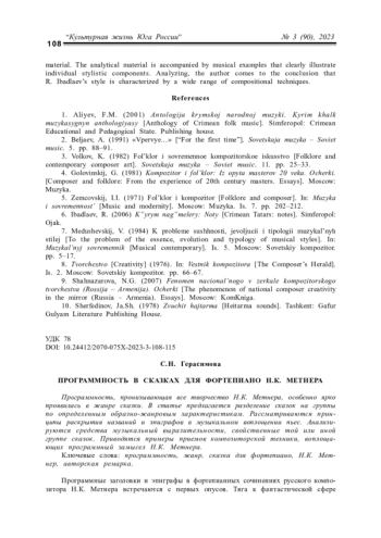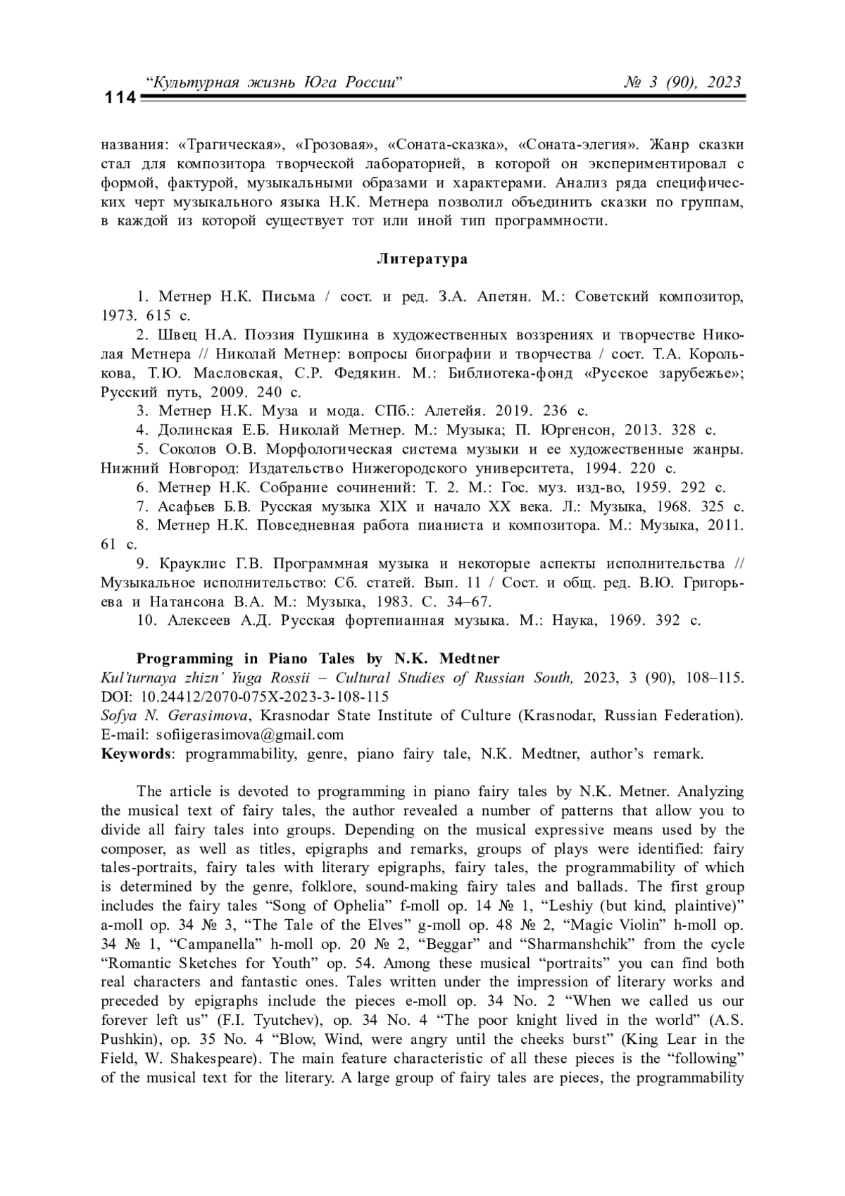 ГЕРАСИМОВА С. Н. ПРОГРАММНОСТЬ В СКАЗКАХ ДЛЯ ФОРТЕПИАНО Н. К. МЕТНЕРА // КУЛЬТУРНАЯ ЖИЗНЬ ЮГА РОССИИ. 2023. № 3 (90)