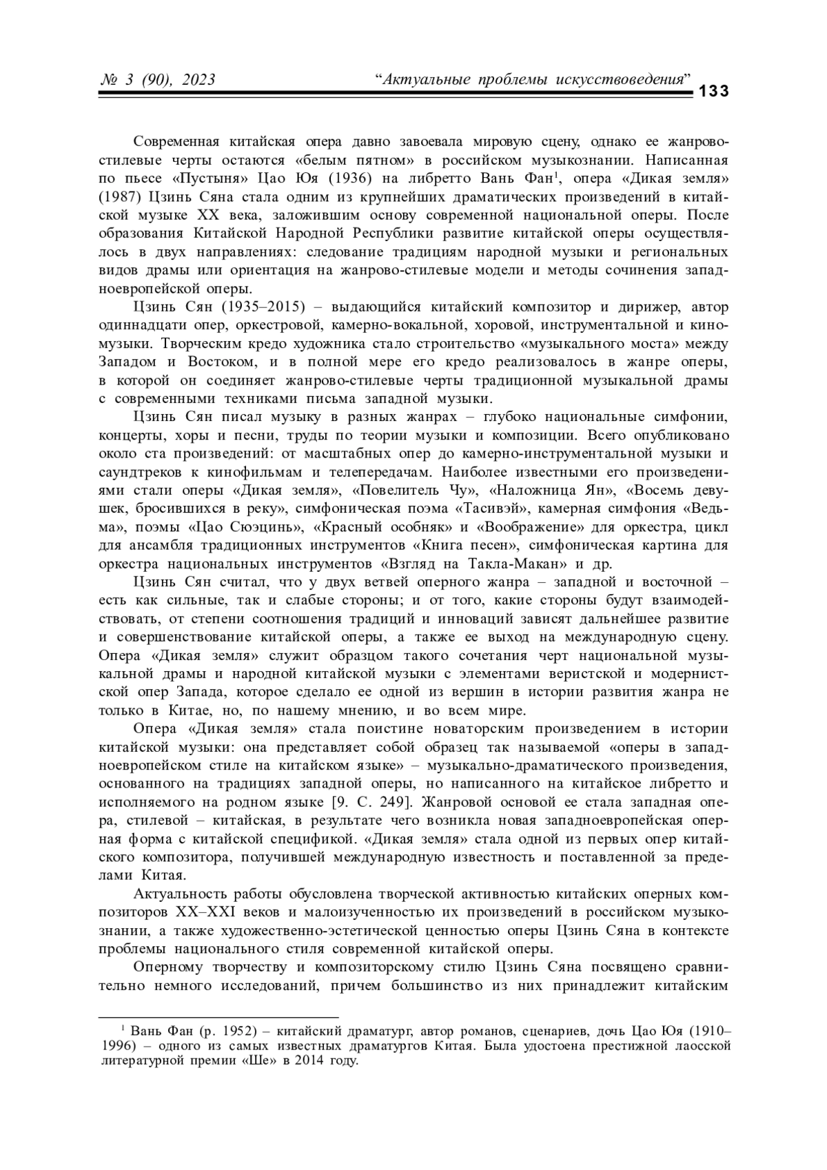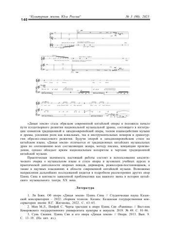 Статья: "ДИКАЯ ЗЕМЛЯ" ЦЗИНЬ СЯНА: СОВРЕМЕННАЯ ОПЕРА В НАЦИОНАЛЬНОМ СТИЛЕ (2023)