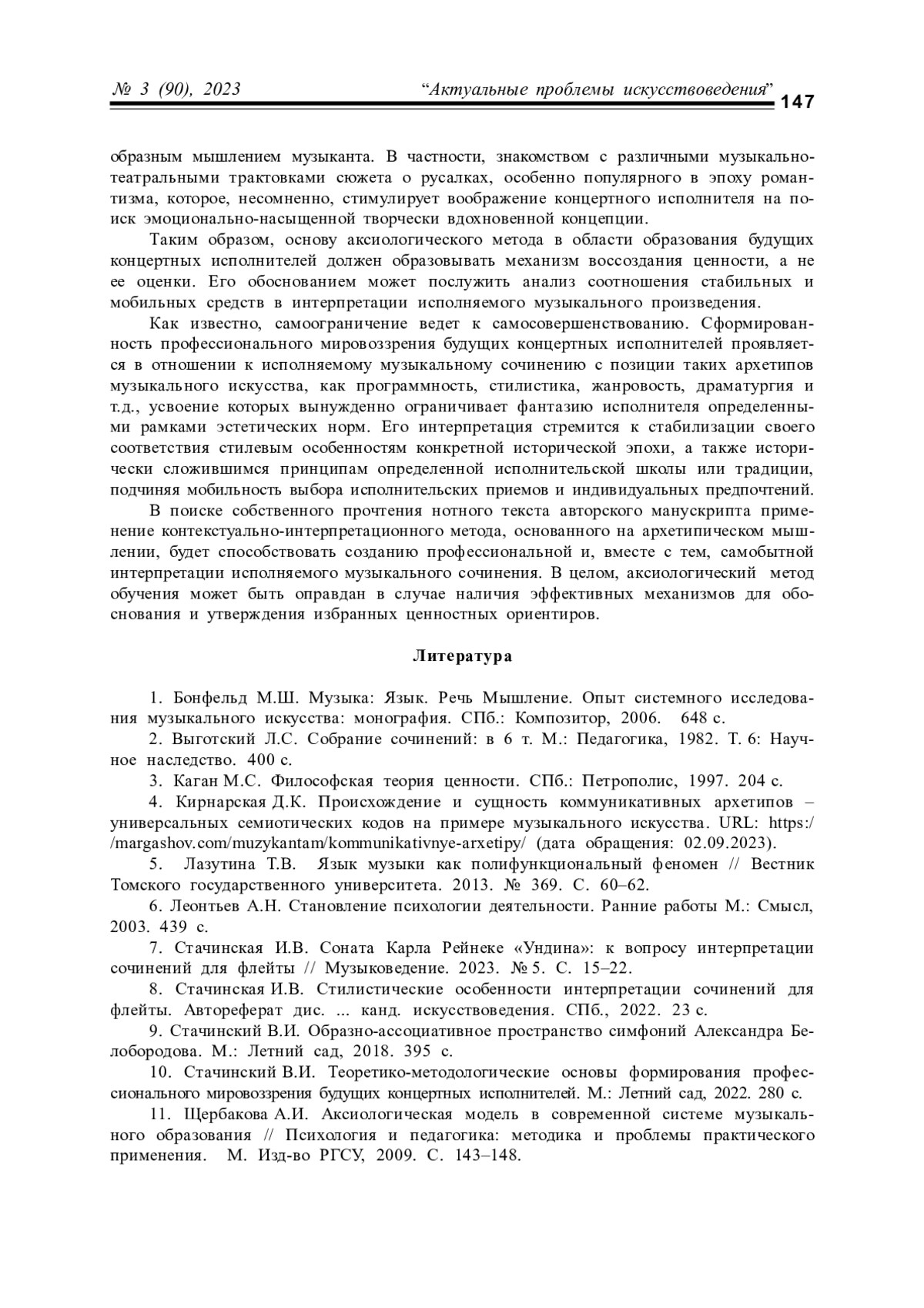 7. Стачинская И.В. Соната Карла Рейнеке “Ундина”: к вопросу интерпретации сочинений для флейты // Музыковедение. 2023. № 5. С. 15-22. EDN: ODGXLU