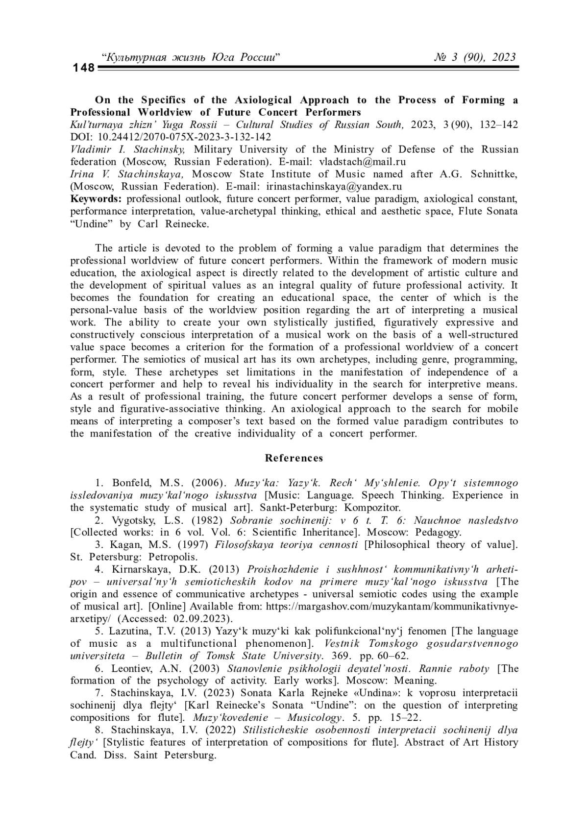 10. Стачинский В.И. Теоретико-методологические основы формирования профессионального мировоззрения будущих концертных исполнителей. М.: Летний сад, 2022. 280 с.