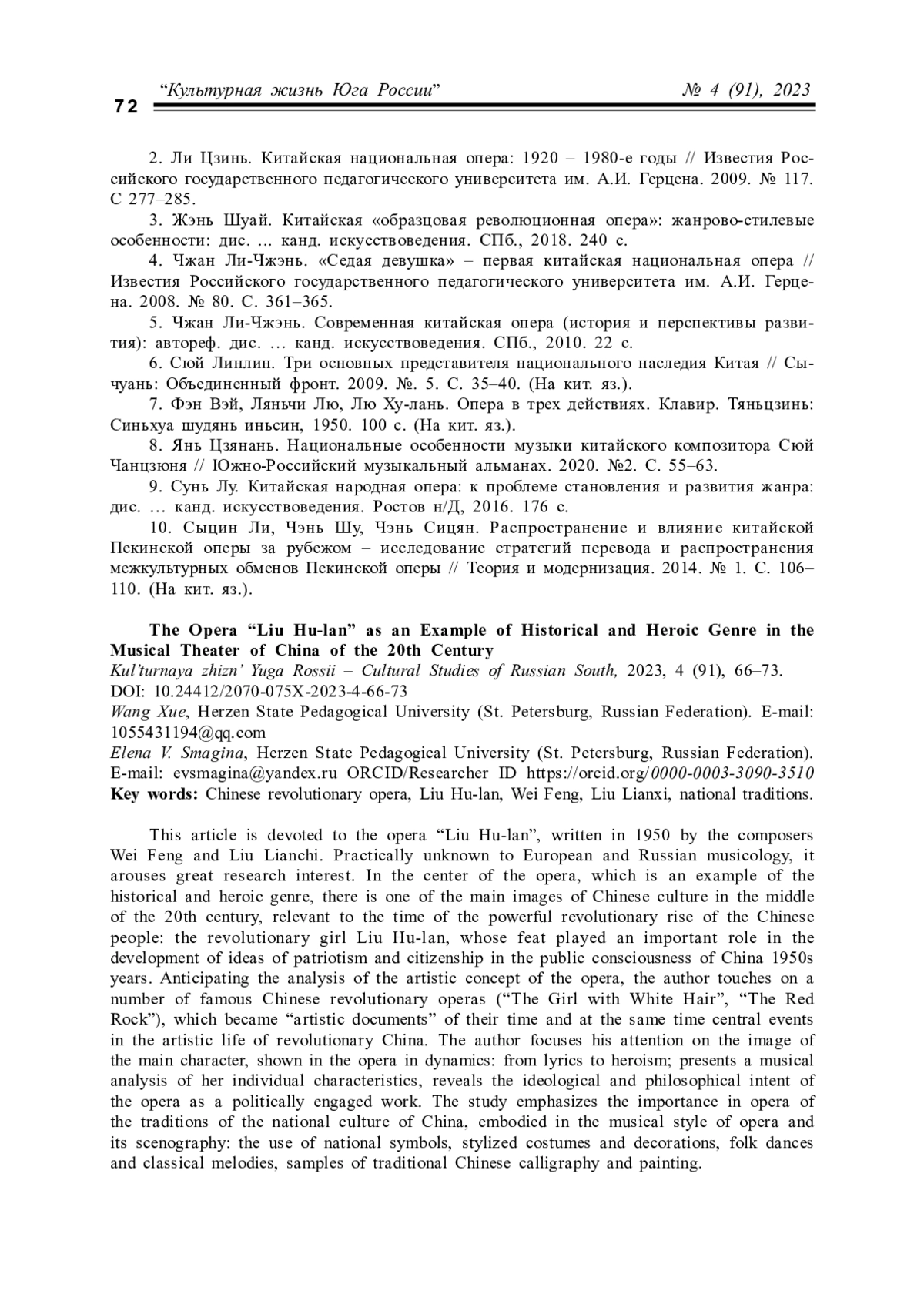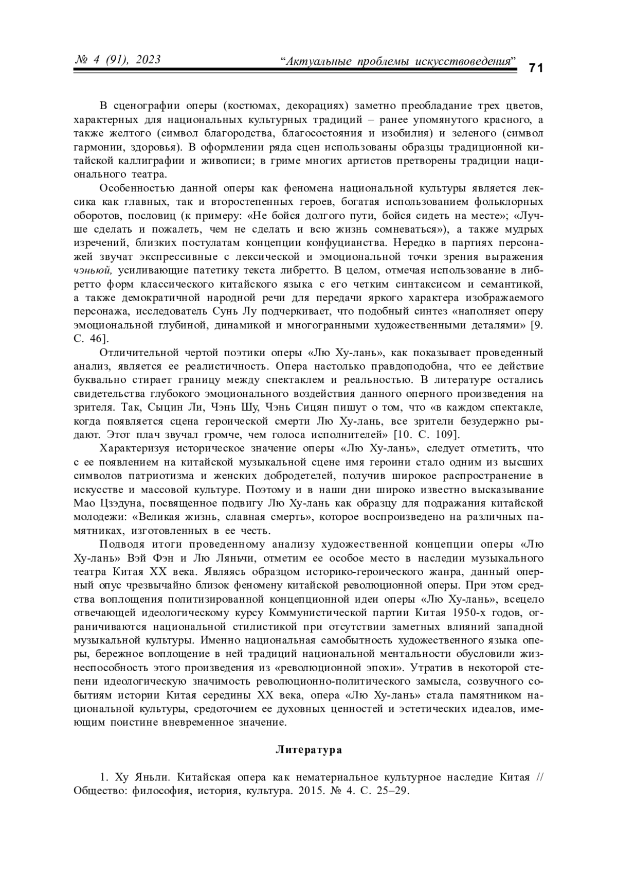 1. Ху Яньли. Китайская опера как нематериальное культурное наследие Китая // Общество: философия, история, культура. 2015. № 4. С. 25-29.