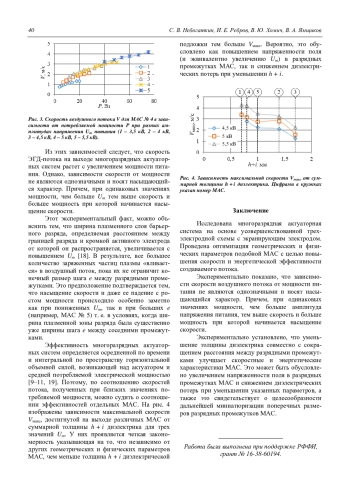 Экспериментально установлено, что уменьшение толщины диэлектрика совместно с сокращением расстояния между разрядными промежутками улучшает скоростные и энергетические характеристики МАС. Это может быть обусловлено увеличением напряженности поля в разрядных промежутках МАС и снижением диэлектрических потерь при уменьшении указанных параметров, а также это свидетельствует о целесообразности дальнейшей миниатюризации поперечных размеров разрядных промежутков МАС.