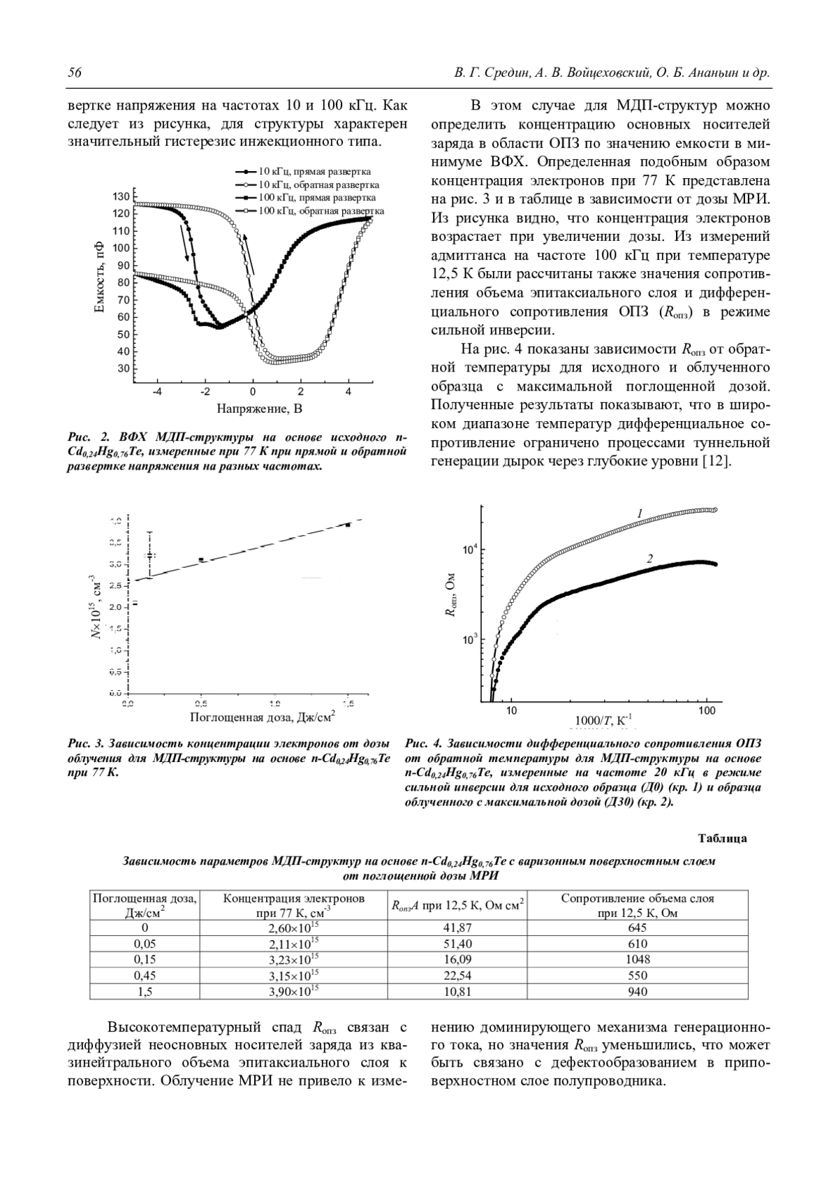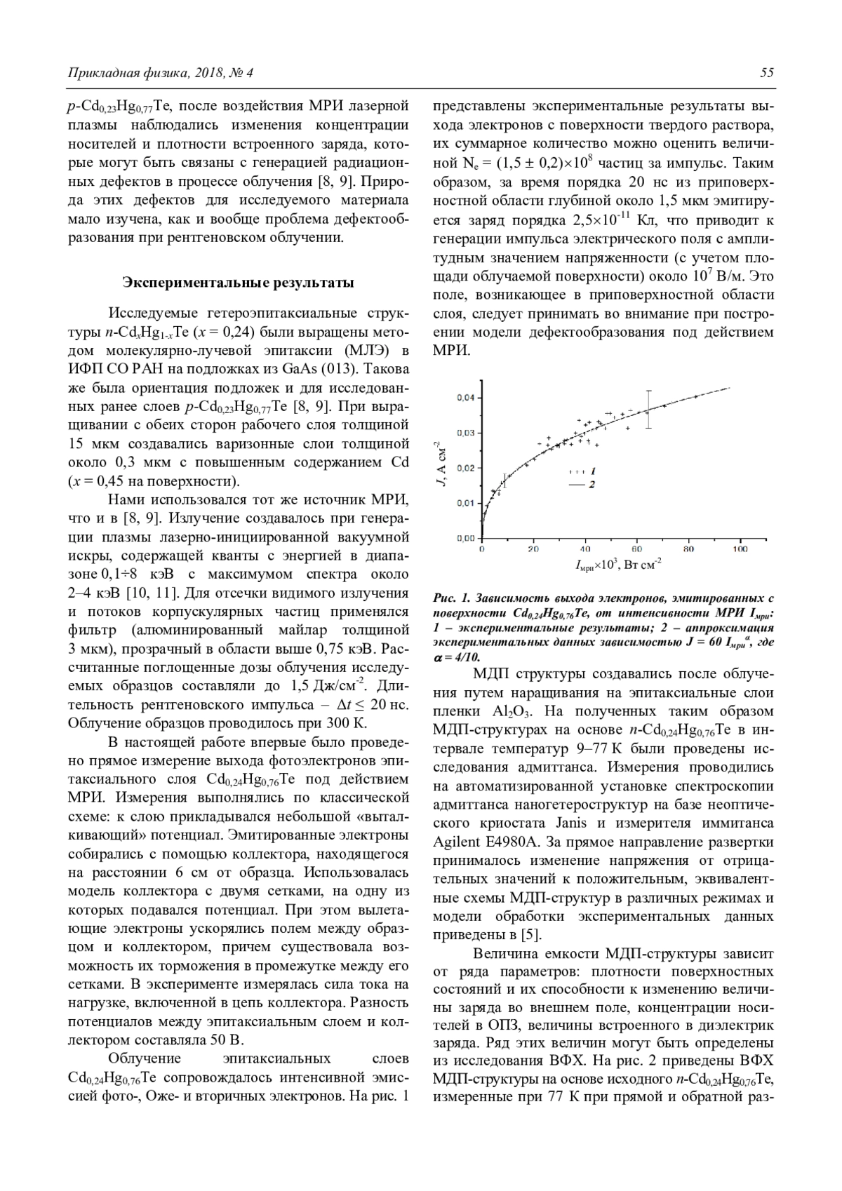 Средин В. Г., Войцеховский А. В., Ананьин О. Б., Мелехов А. П., Несмелов С. Н., Дзядух С. М. Образование поверхностных дефектов в n-CdxHg1-xTe мягким рентгеновским излучением лазерной плазмы 54
