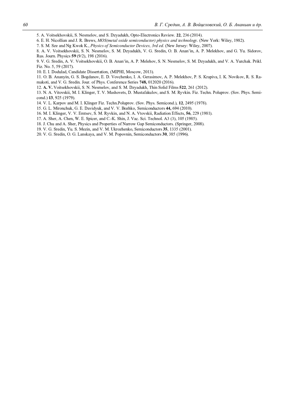 12. Voitsekhovskii A. V., Nesmelov S. N., Dzyadukh S. M. // Thin Solid Films. 2012. Vol. 522. P. 261.