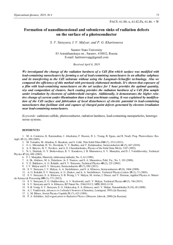 S. V. Stetsyura, I. V. Malyar, and P. G. Kharitonova Formation of nanodimensional and submicron sinks of radiation defects on the surface of a pho-toconductor 68