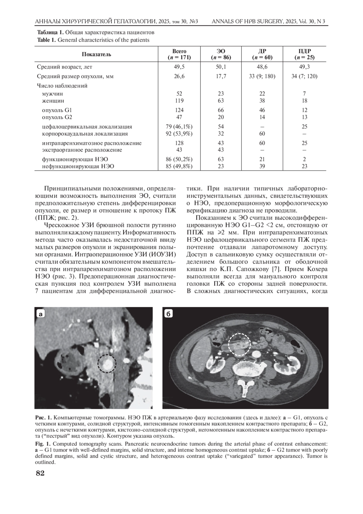 Материал и методы. В исследование включен 171 пациент с нейроэндокринными опухолями поджелудочной железы G1–G2. Панкреатодуоденальная резекция выполнена 25 больным, дистальная резекция – 60, энуклеация – 86.