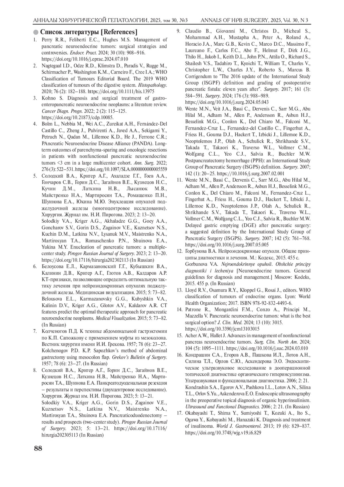 8. Солодкий В.А., Кригер А.Г., Горин Д.С., Загайнов В.Е., Кузнецов Н.С., Латкина Н.В., Майстренко Н.А., Мартиросян ТА., Шуинова Е.А. Панкреатодуоденальная резекция - результаты и перспективы (двухцентровое исследование). Хирургия. Журнал им. Н.И. Пирогова. 2023; 5: 13-21.
