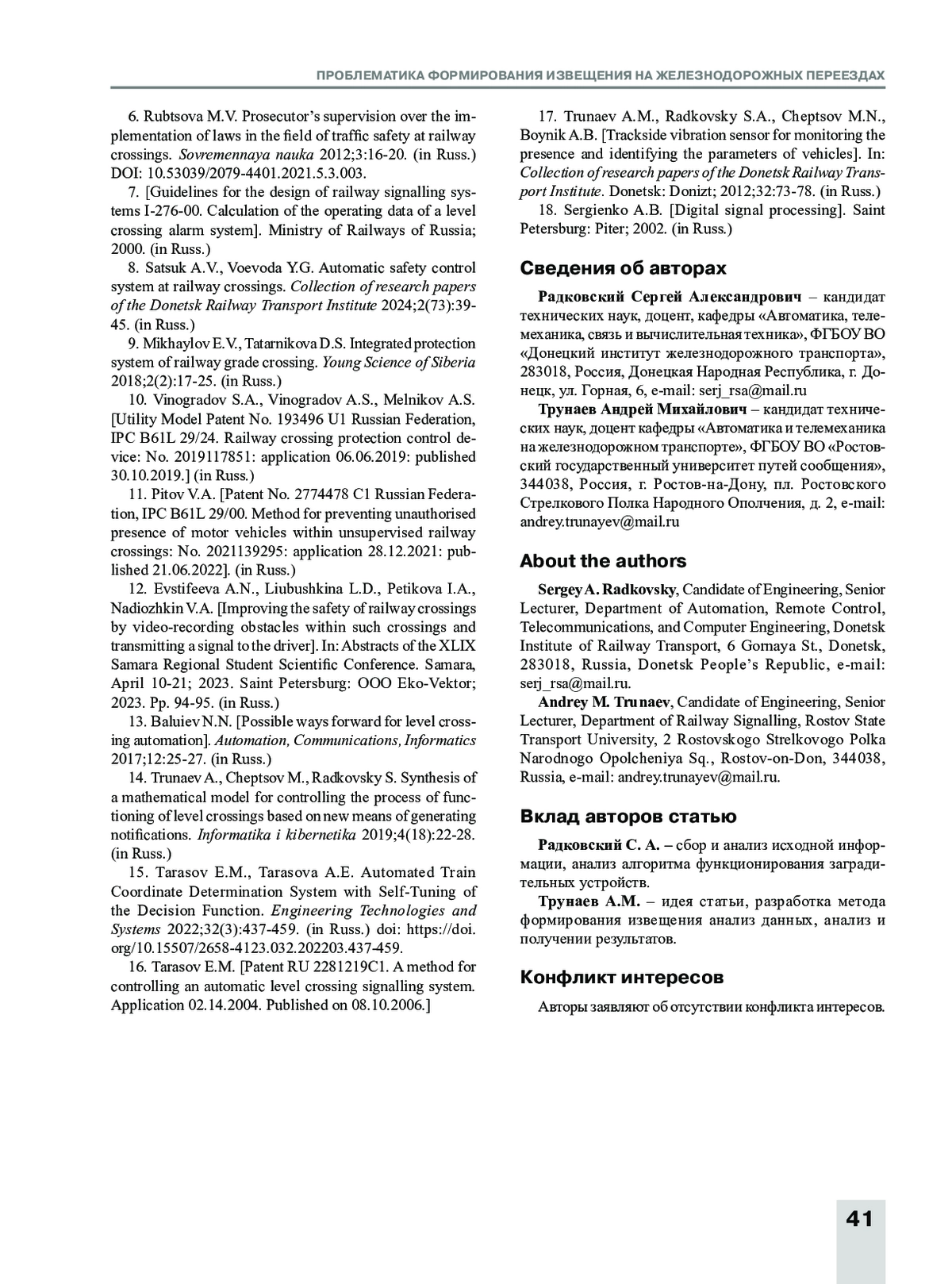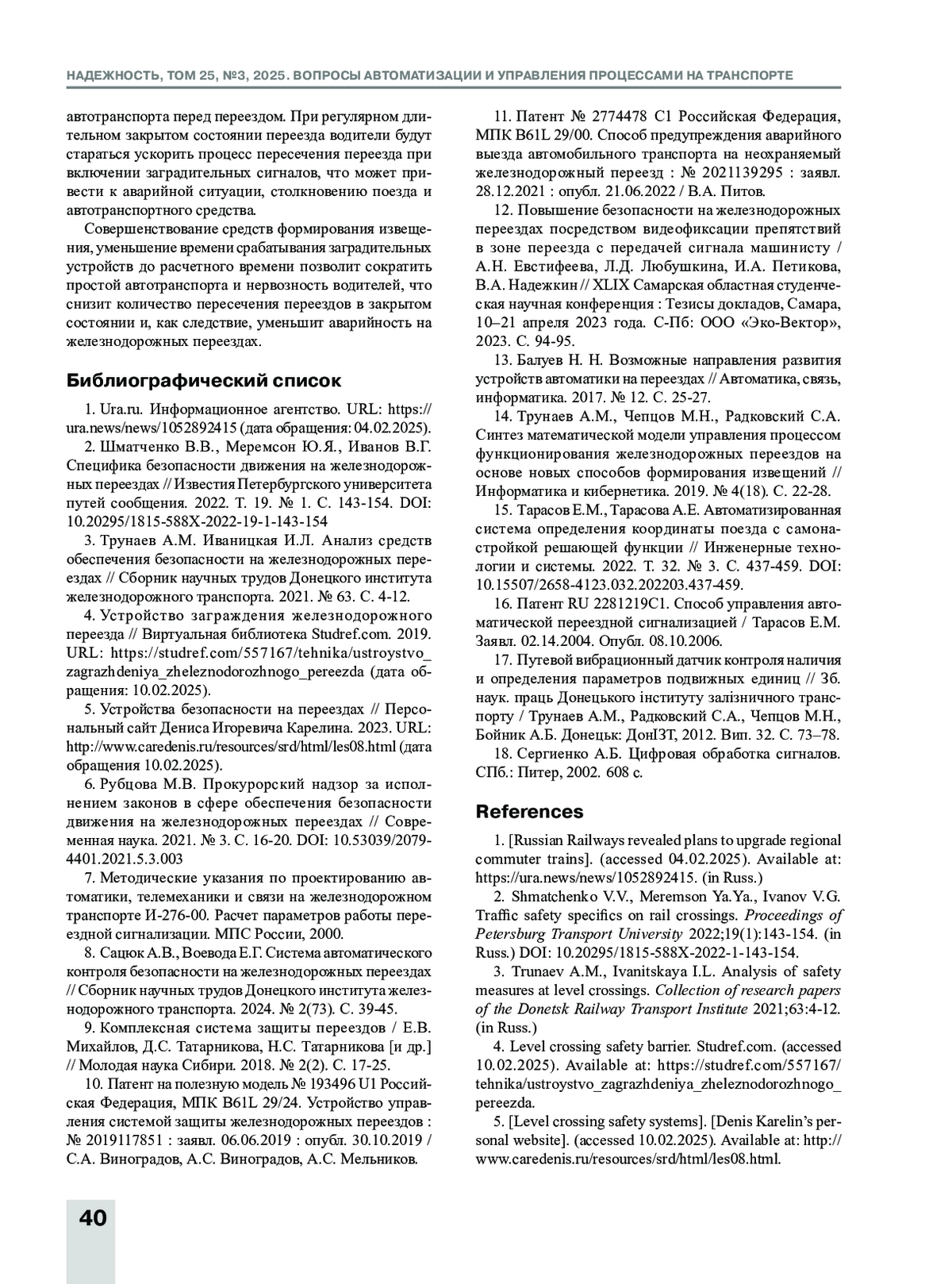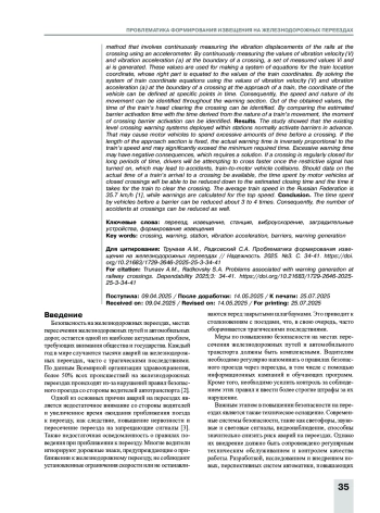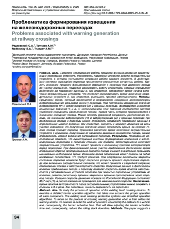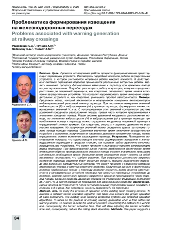 РАДКОВСКИЙ С. А., ТРУНАЕВ А. М. ПРОБЛЕМАТИКА ФОРМИРОВАНИЯ ИЗВЕЩЕНИЯ НА ЖЕЛЕЗНОДОРОЖНЫХ ПЕРЕЕЗДАХ // НАДЕЖНОСТЬ. 2025. ТОМ 25, № 3