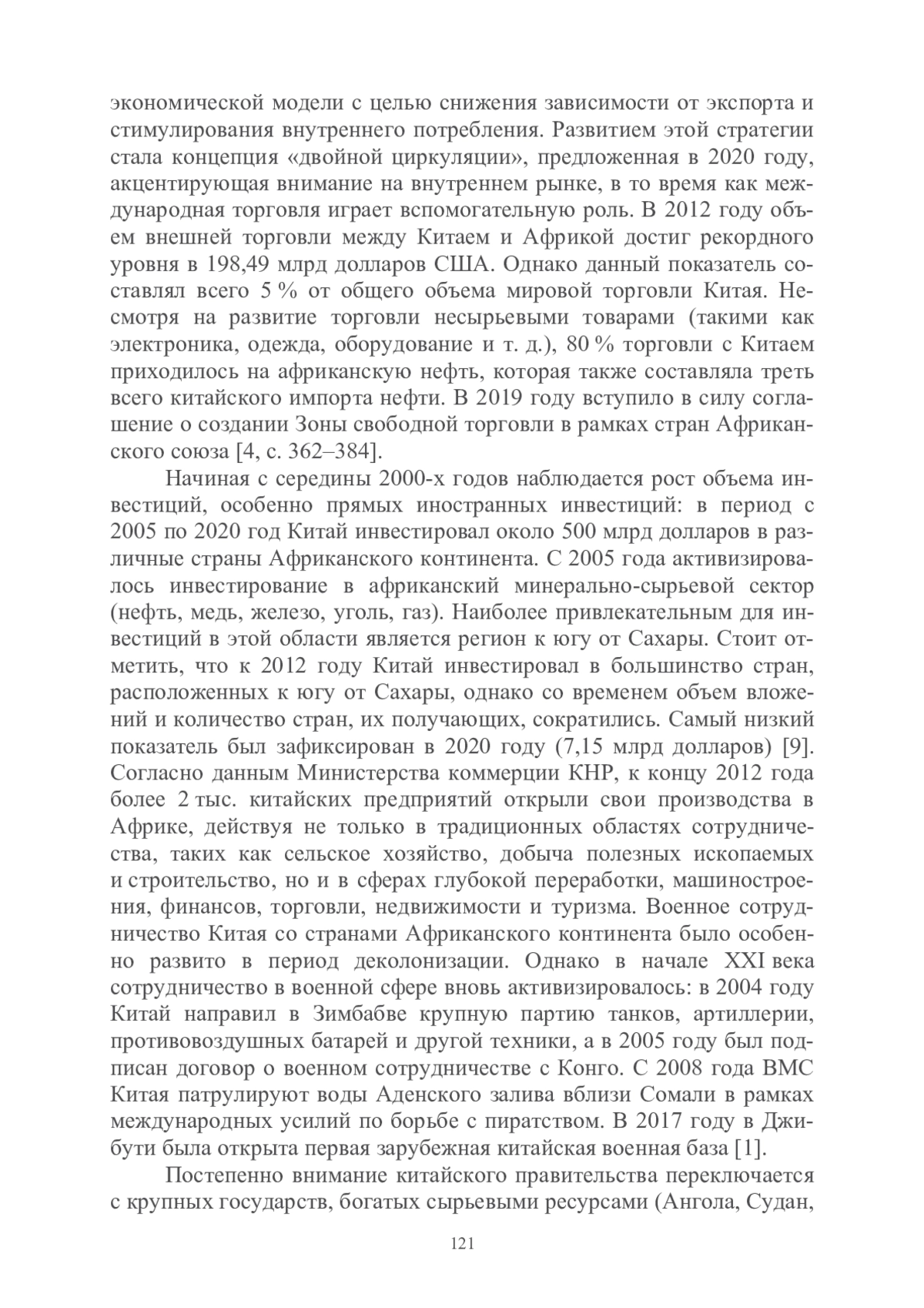 2. Викторьен А. Особенности инвестиционного сотрудничества Китая со странами Африки // Вестник РУДН. Серия: Экономика. 2013. № 3. С. 56-64.