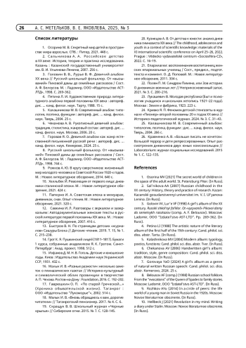 7. Горовая Я. О. Девичий альбом как жанр естественной письменной русской речи : автореф. дис. ... канд. филол. наук. Кемерово, 2024. 25 с.
