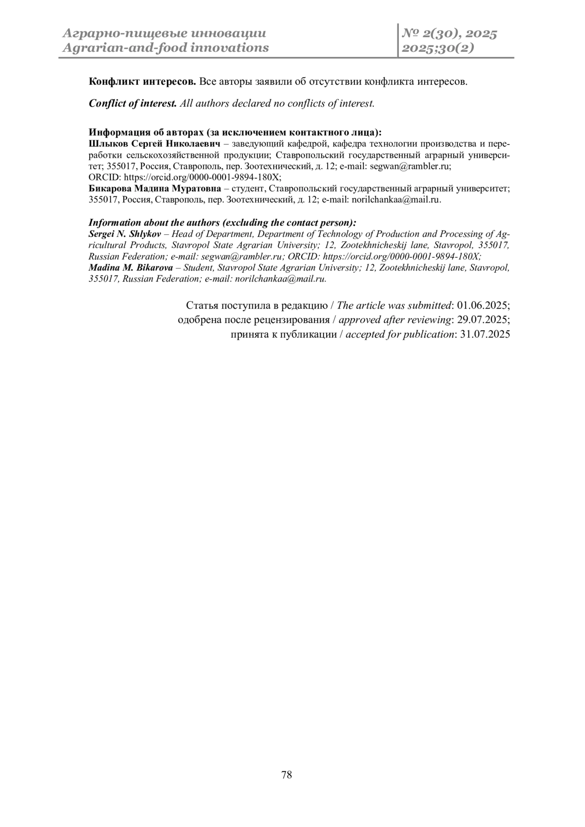 11. Nowak B., von Mueffling T. Porcine blood cell concentrates for food products: hygiene, composition, and preservation // Journal of Food Protection. 2006. Vol. 69. P. 2183-2192.