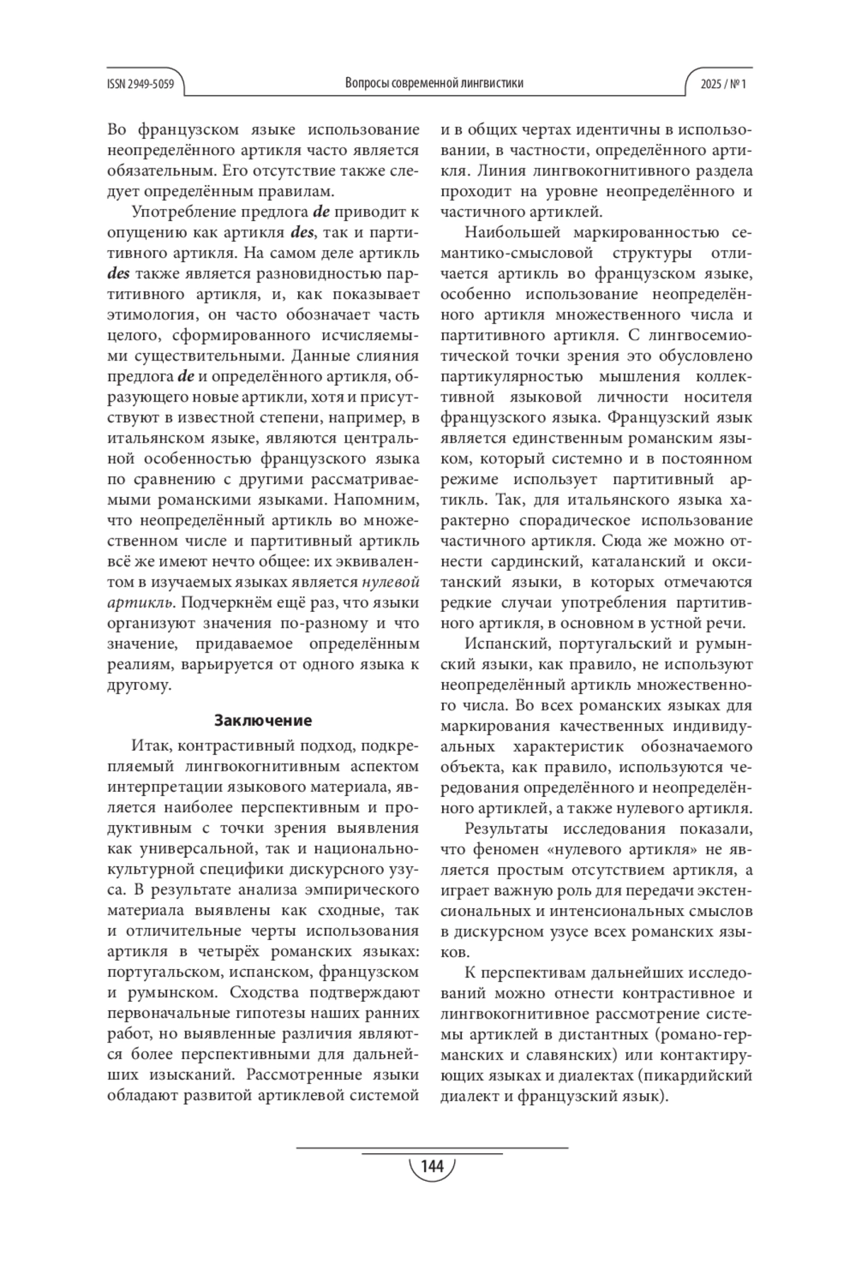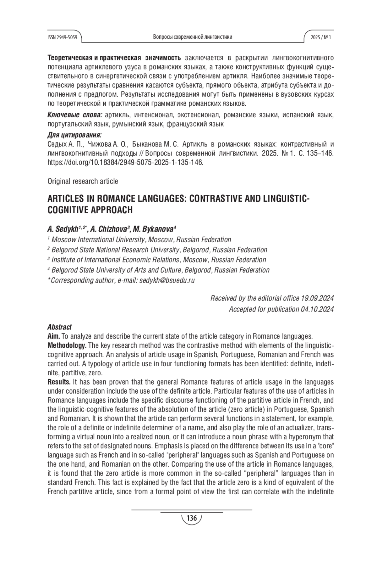 Теоретическая и практическая значимость. Проведённый анализ является актуальным для сравнительной типологии двух близкородственных языков (испанского и французского). Полученные результаты могут быть использованы в различных курсах теории и практики преподавания романских языков: теоретической и практической грамматики, сравнительной типологии.