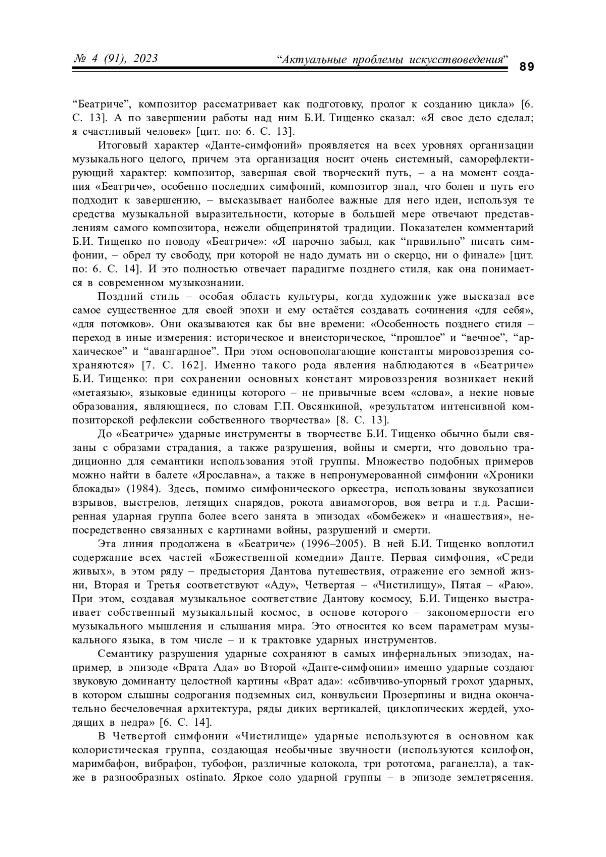 8. Овсянкина Г. Феномен позднего стиля Б. Тищенко // Южно-Российский музыкальный альманах. 2016. № 1(22). С. 12-17. EDN: WDLHGP