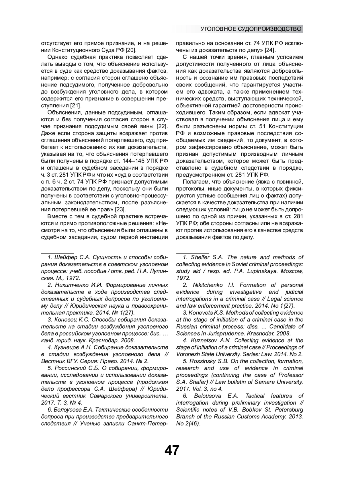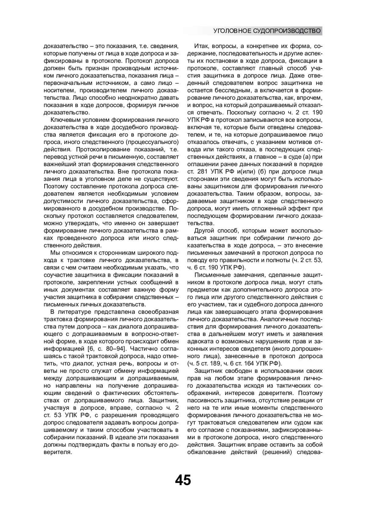 Статья: ФОРМЫ И СПОСОБЫ УЧАСТИЯ ЗАЩИТНИКА В ФОРМИРОВАНИИ ЛИЧНЫХ ДОКАЗАТЕЛЬСТВ НА ДОСУДЕБНЫХ СТАДИЯХ УГОЛОВНОГО ПРОЦЕССА (2025)