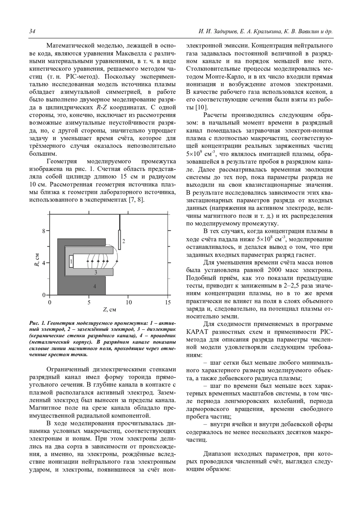 Задириев И. И., Кралькина Е. А., Вавилин К. В., Тараканов В. П., Швыдкий Г. В., Александров А. Ф. Комбинация емкостного высокочастотного разряда и разряда постоянного тока для использования в плазменном ускорителе с замкнутым дрейфом электронов. Часть III. Математическое моделирование 33