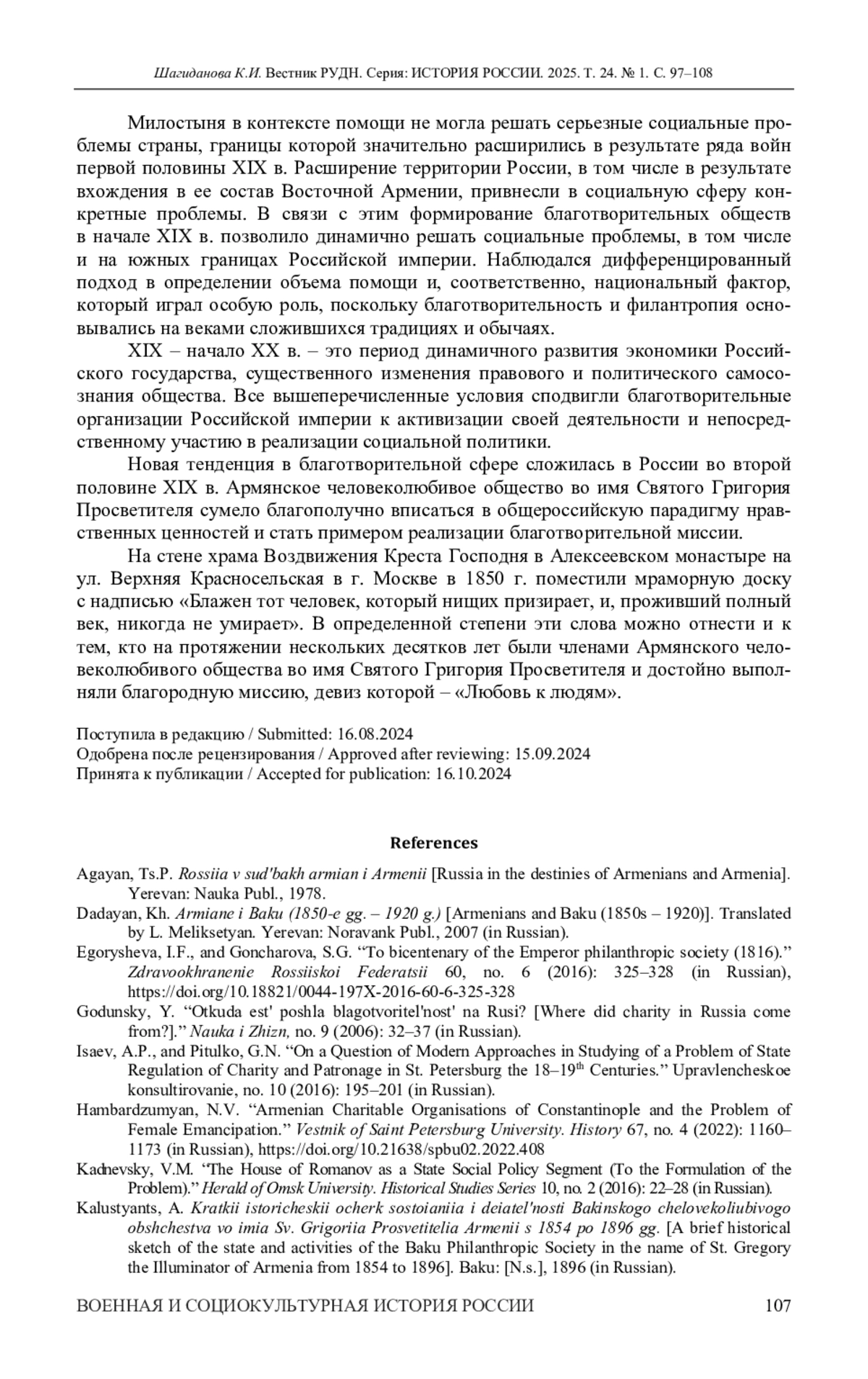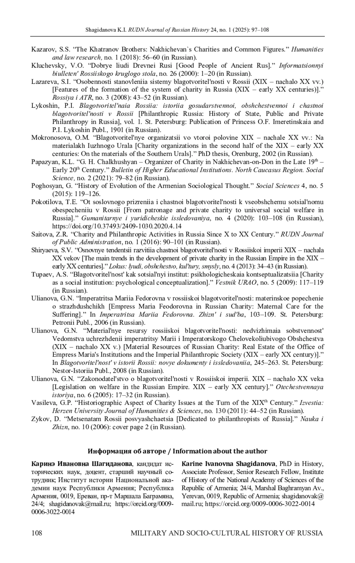 16. Папазян К.Л. Г.Х. Чалхушьян - организатор благотворительности в Нахичевани-на-Дону в конце XIX - начале XX века // Известия вузов. Северо-Кавказский регион. Серия: Общественные науки. 2021. № 2. С. 79-82. DOI: 10.18522/2687-0770-2021-2-79-82 EDN: CZYJEO