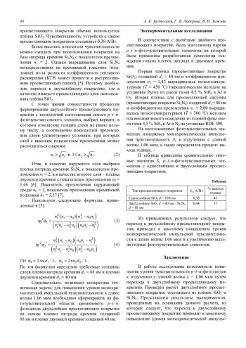 Ключевые фразы: p–i–n-фоточувствительный элемент, чувствительность, длина волны, просветляющее покрытие, sio2, si3n4, просветление