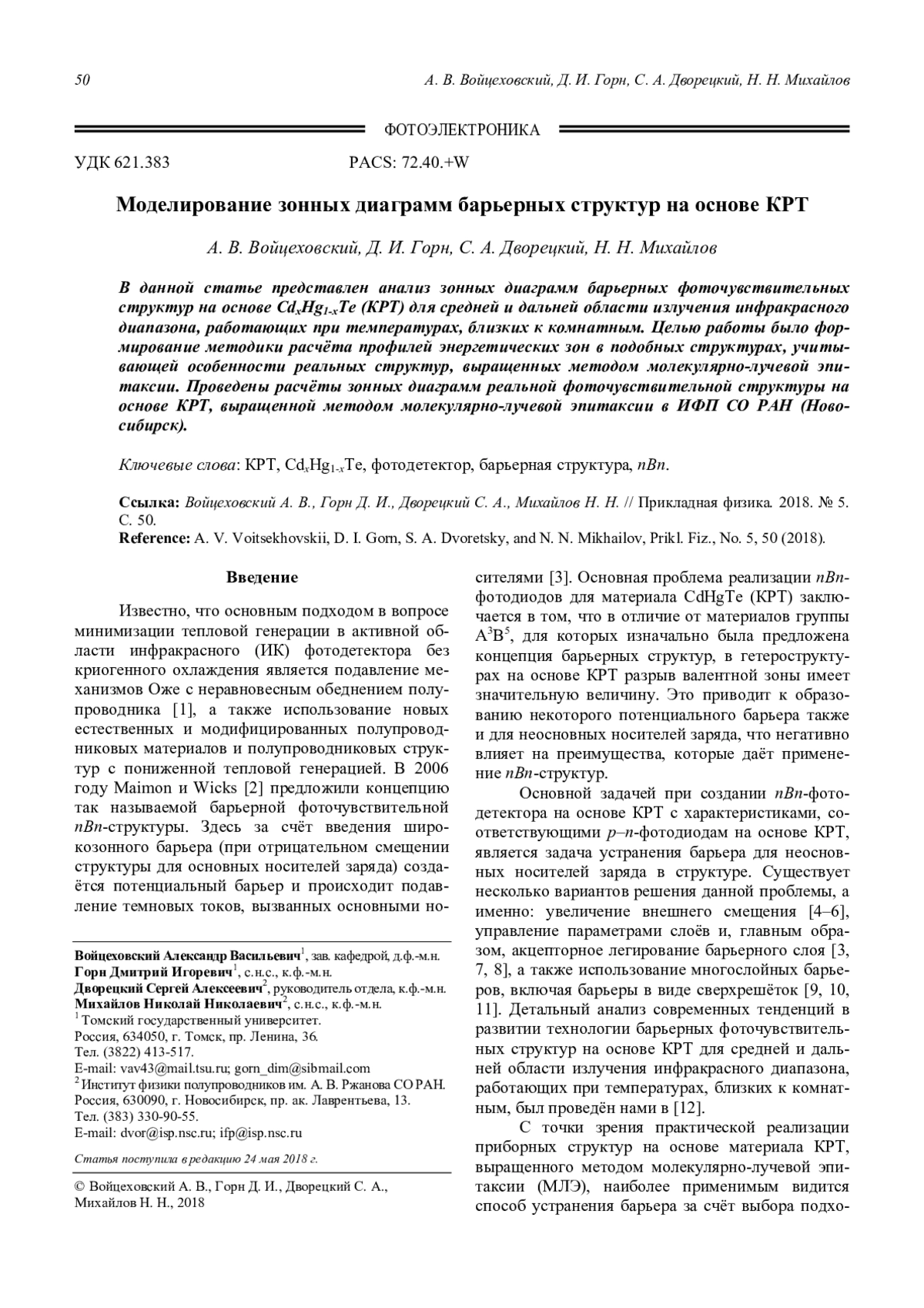 13. Gorn D. I., Voitsekhovskii A. V., Izhnin I. I. // Russian Microelectronics. 2013. Vol. 42. No. 8. P. 525.