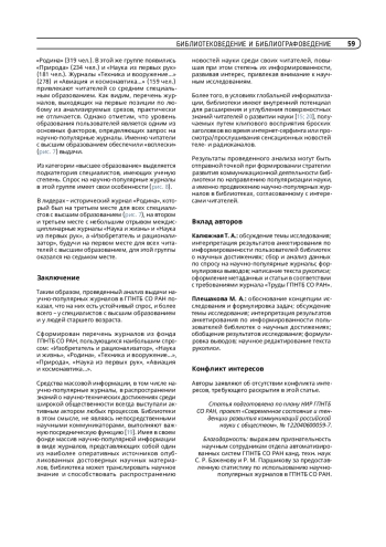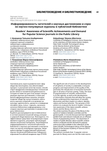 Ключевые фразы: гпнтб со ран, научно-популярный журнал, публичная библиотека, популяризация научных достижений, читатели, коммуникации науки и общества, научные коммуникации