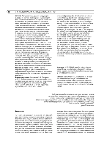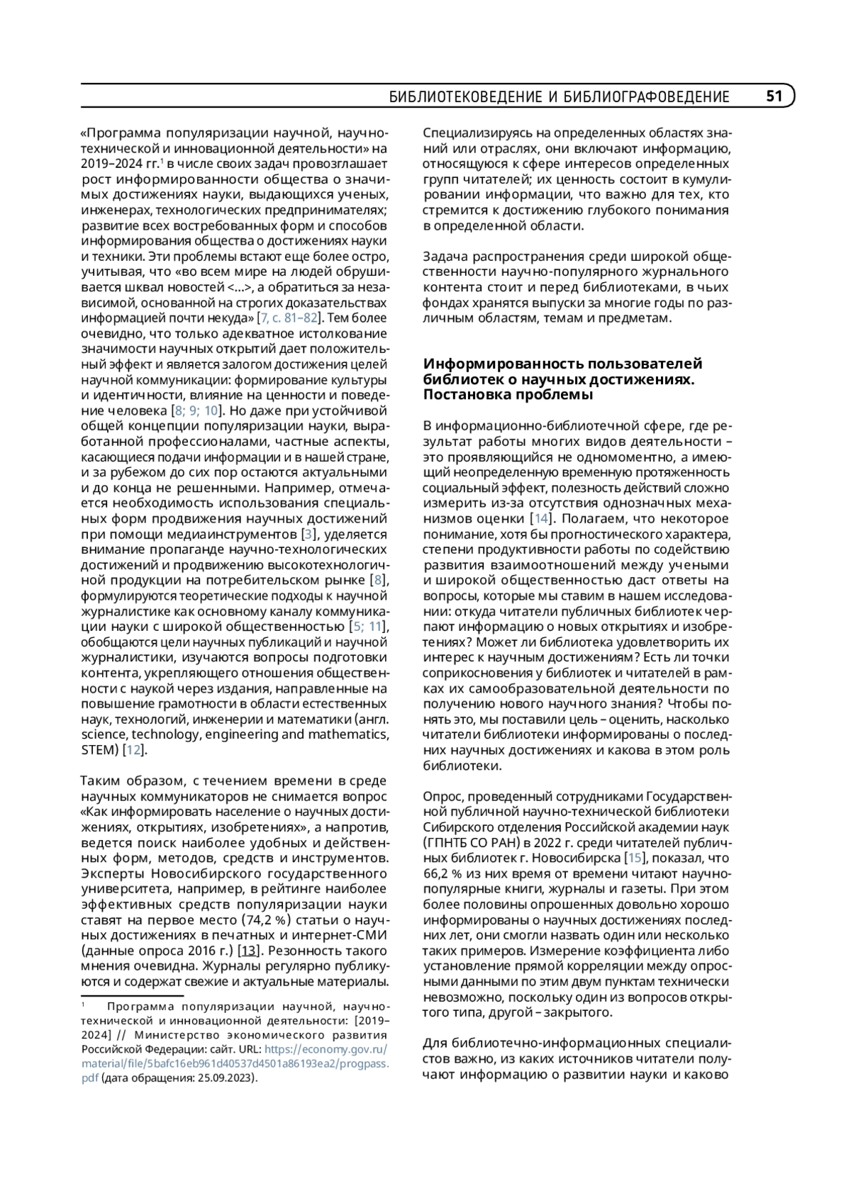 Статья: Информированность читателей о научных достижениях и спрос на научно-популярные журналы в публичной библиотеке (2024)
