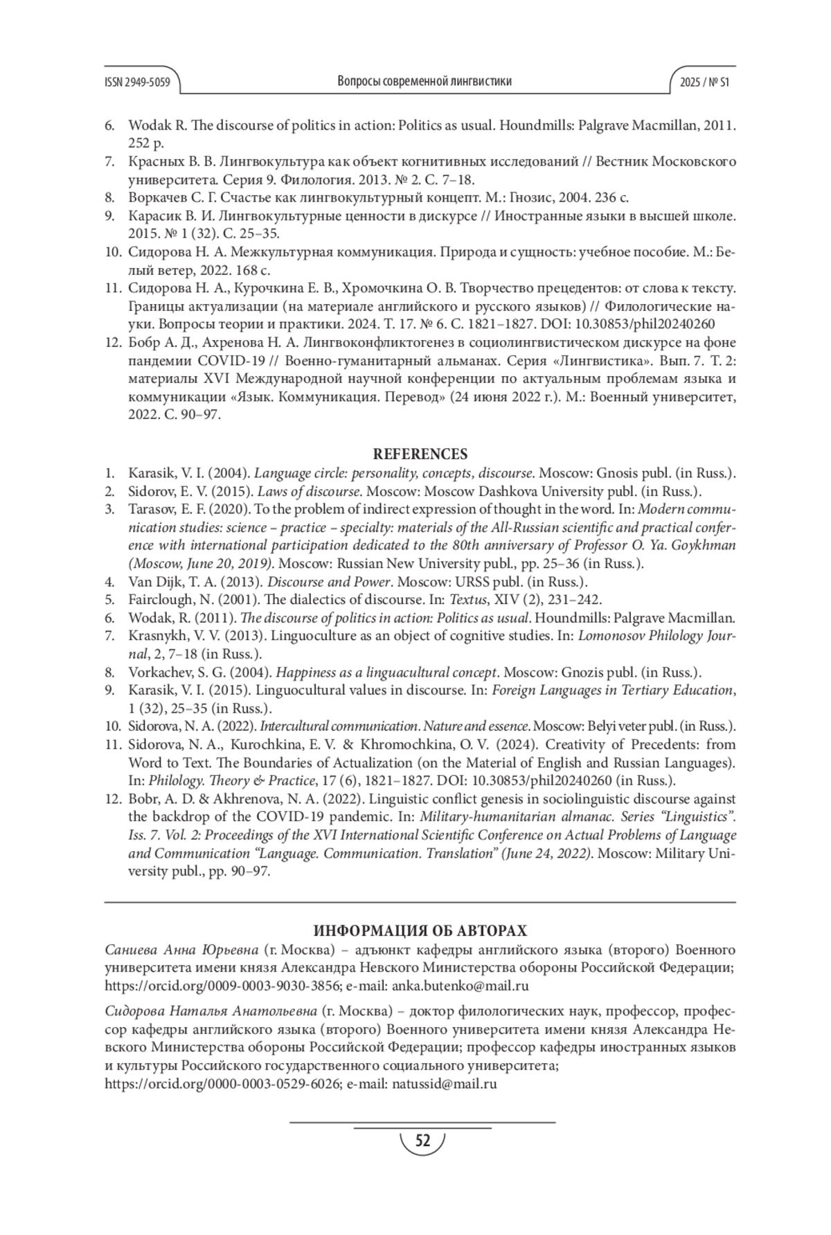 Цель работы заключается в исследовании конфликтного военно-политического дискурса, при реализации которого интегрируются контрастные аспекты лингвокультур, являющихся компонентами коммуникативных деятельностей участников социовербального взаимодействия.