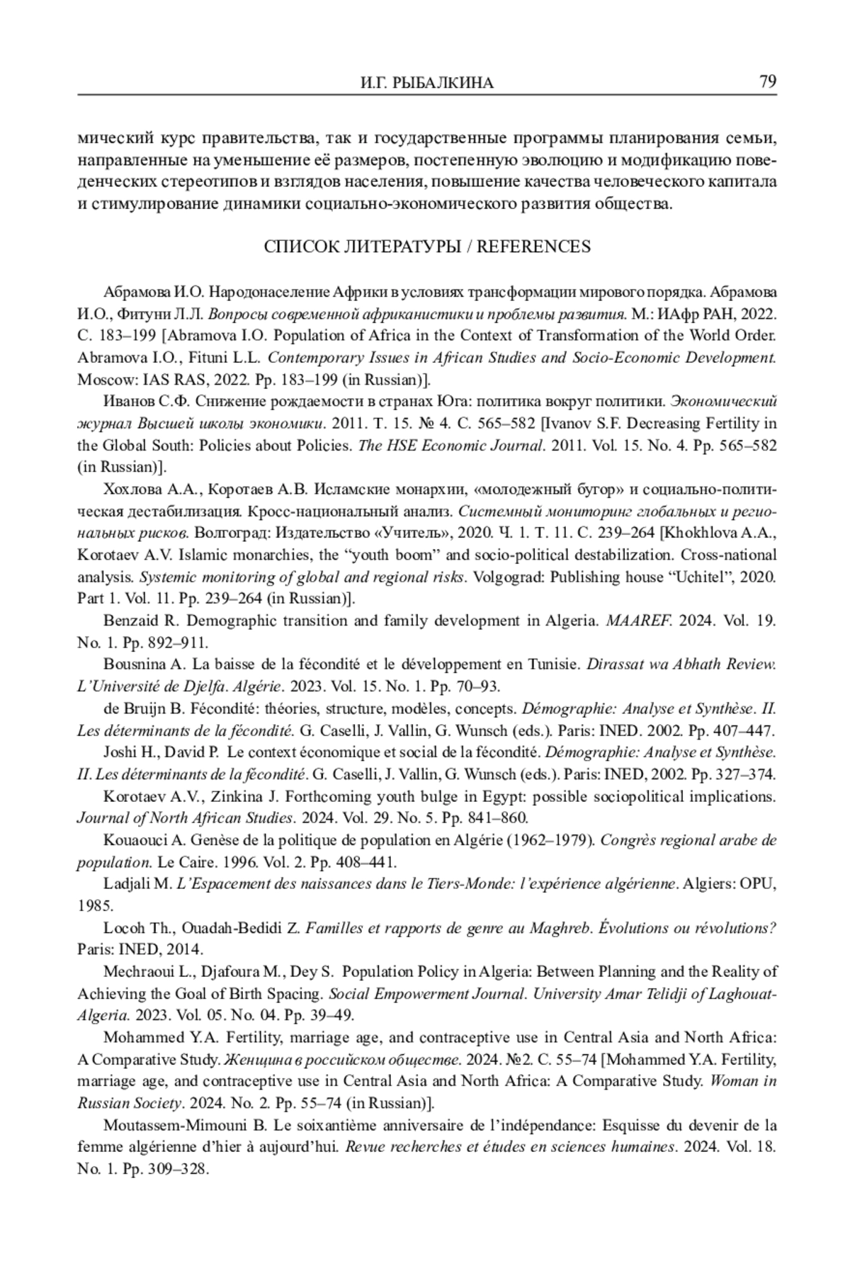 18. Ouadah-Bedidi Z., Vallin J. Fertility and Population Policy in Algeria: Discrepancies between Planning and Outcomes. Population and Development Review. 2013. Vol. 38. Pp. 179-196.