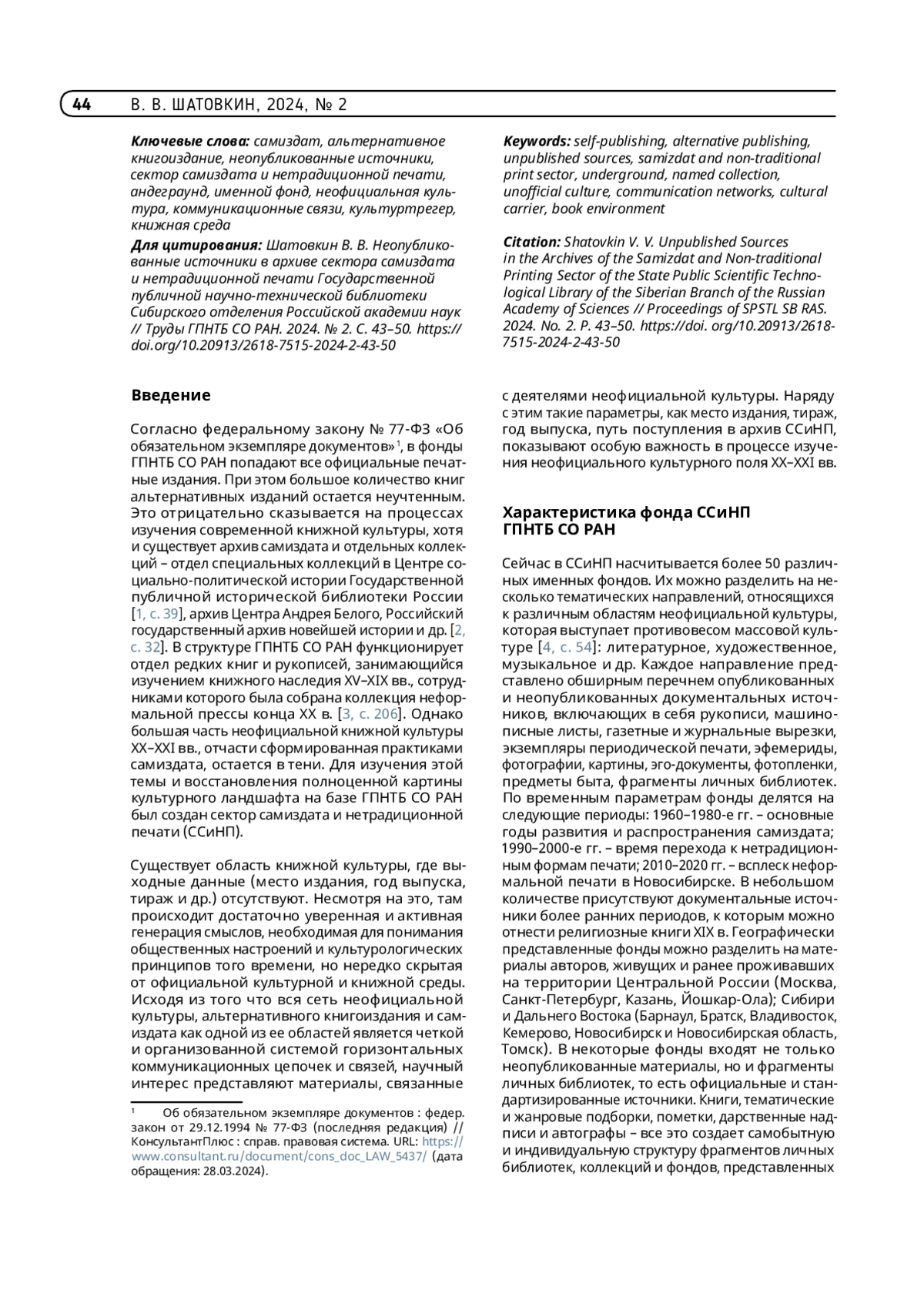 3. Савенко Е. Н., Пронина Ю. С. Самиздат в Государственной публичной научно-технической библиотеке СО РАН // Acta samizdatica / Записки о самиздате : альманах. Москва, 2020. Вып. 5. С. 205-223.