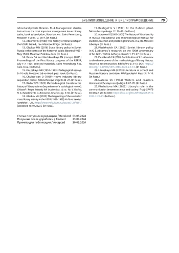 22. Плешкевич Е. А. Вклад К. И. Абрамова в развитие методологии истории библиотечного дела: историческая реконструкция // Библиосфера. 2020. № 2. С. 3-13. https://doi.org/10.20913/1815-3186-2020-2-3-13.