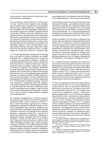 В статьях В. З. Галиева рассматриваются особенности процесса становления библиографии о Казахстане. Отмечая, что для ранней стадии библиографии о Казахстане был характерен универсализм с преобладанием исторического подхода, ученый связывает развитие библиографии историко-этнологической литературы по Казахстану с развитием исторической науки в Центральной России.